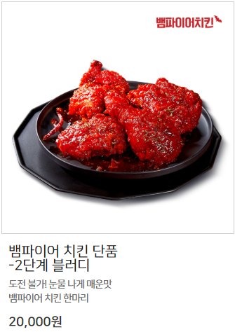 세계 치킨 시리즈 1탄으로 미국 네쉬빌 스타일의 매운맛을 개발해서 BBQ에서 출시한 뱀파이어 치킨.