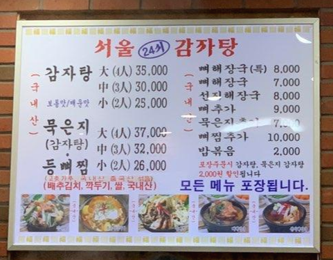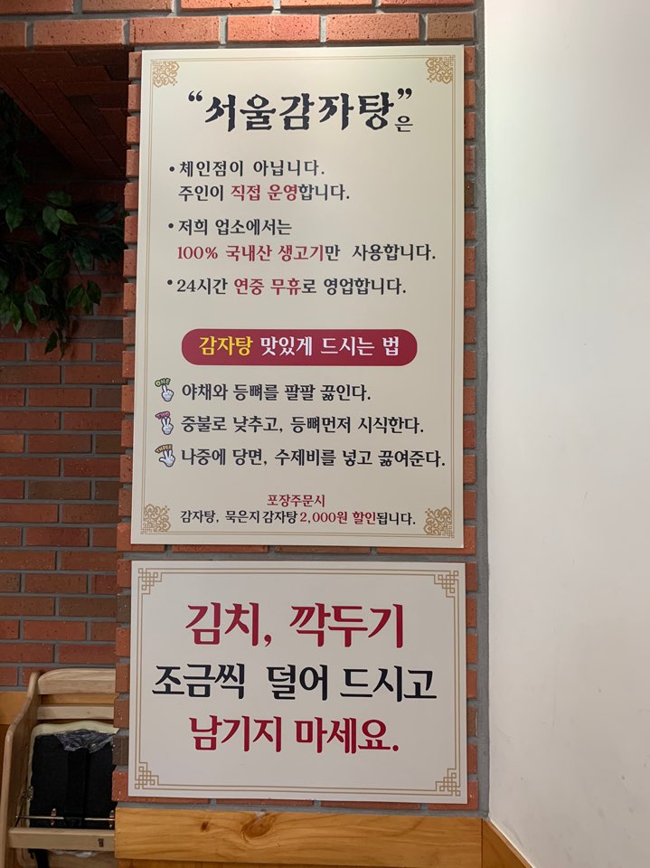 벽면에는 서울 감자탕 가게에 대한 정보와 감자탕을 맛있게 드시는 법이 있네요. ㅎㅎ