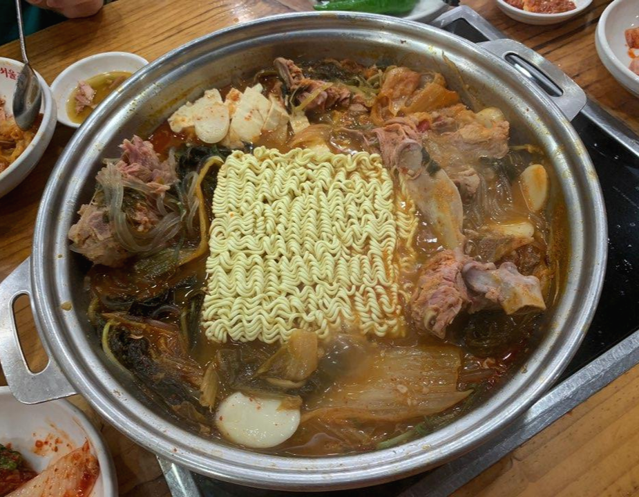 묵은지와 뼈를 어느 정도 먹고 라면사리도 넣어주는 센스 ㅎㅎㅎ