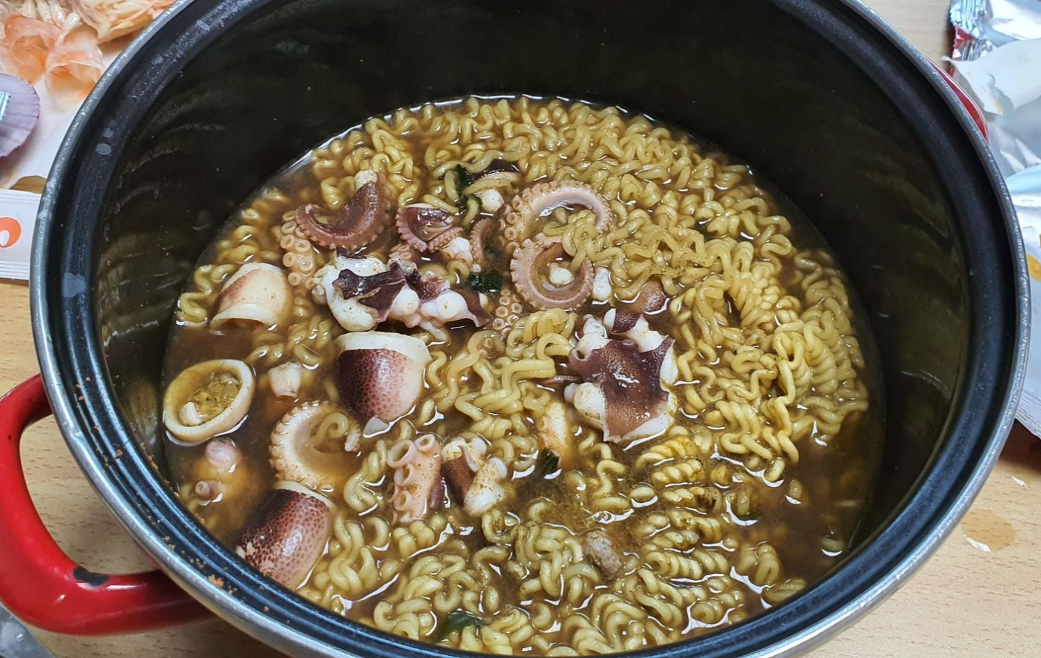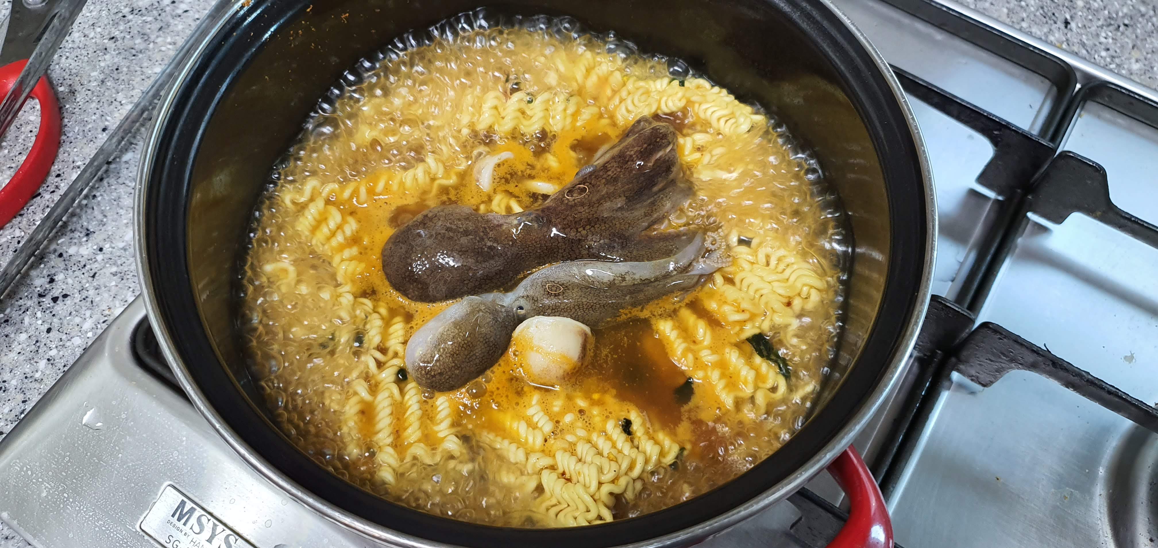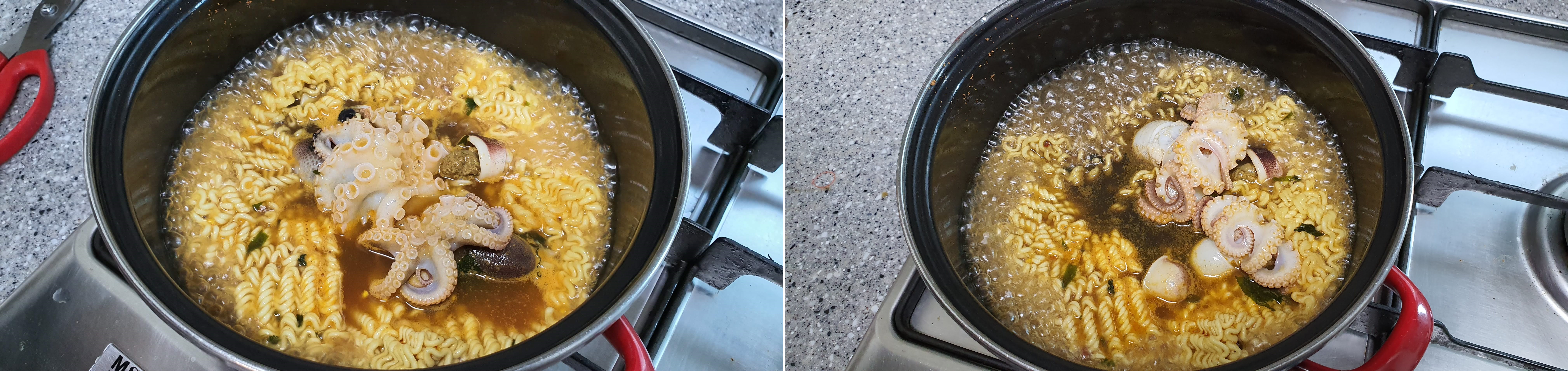 라면이 익어 갈 때쯤 쭈꾸미 퐁당!