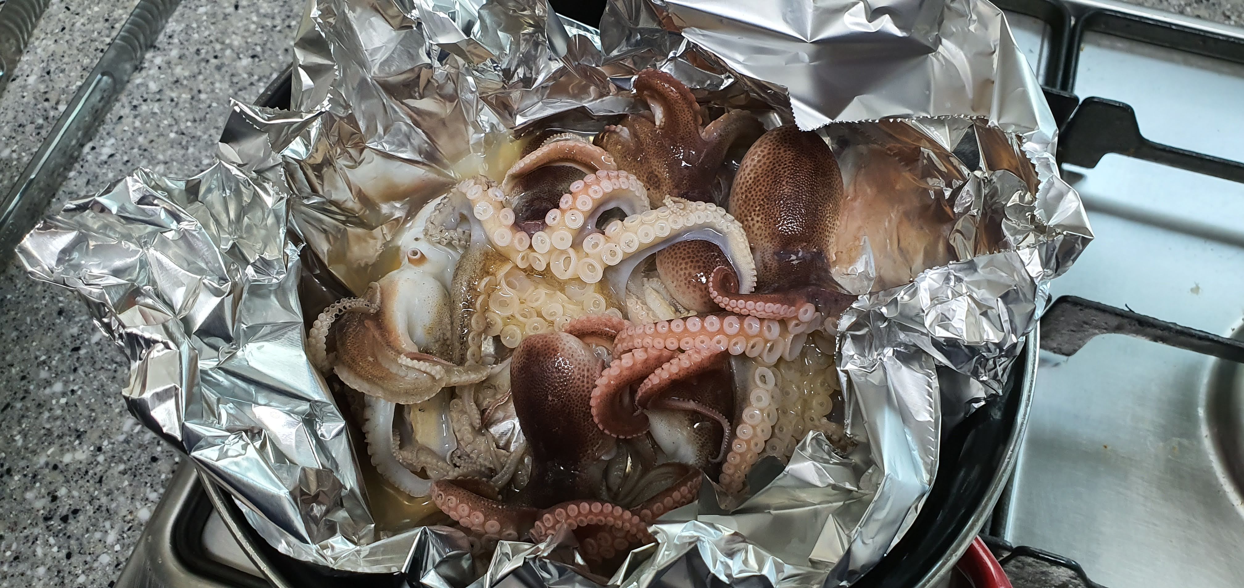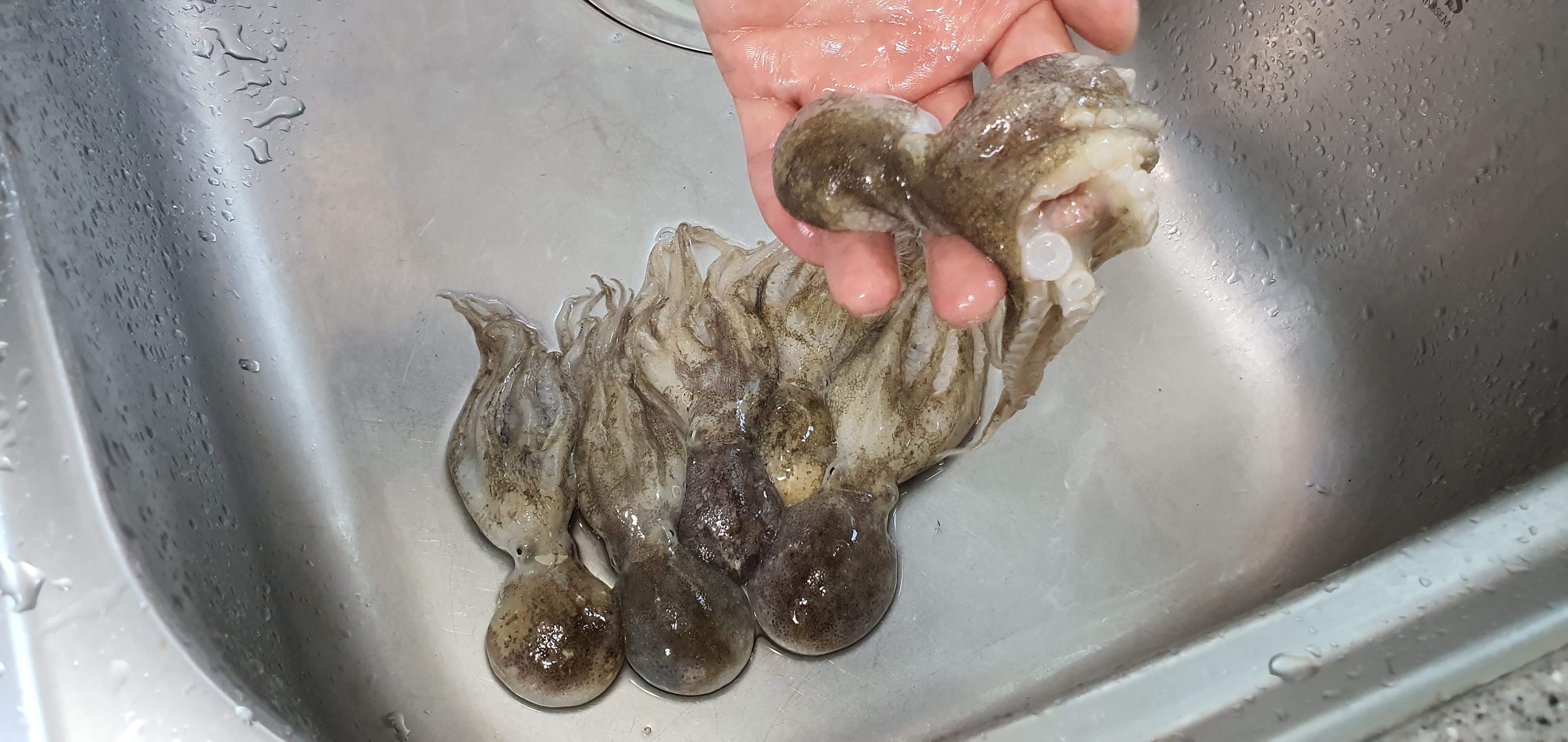 쭈꾸미를 잘 씻어서 냄비에 삶았어요.