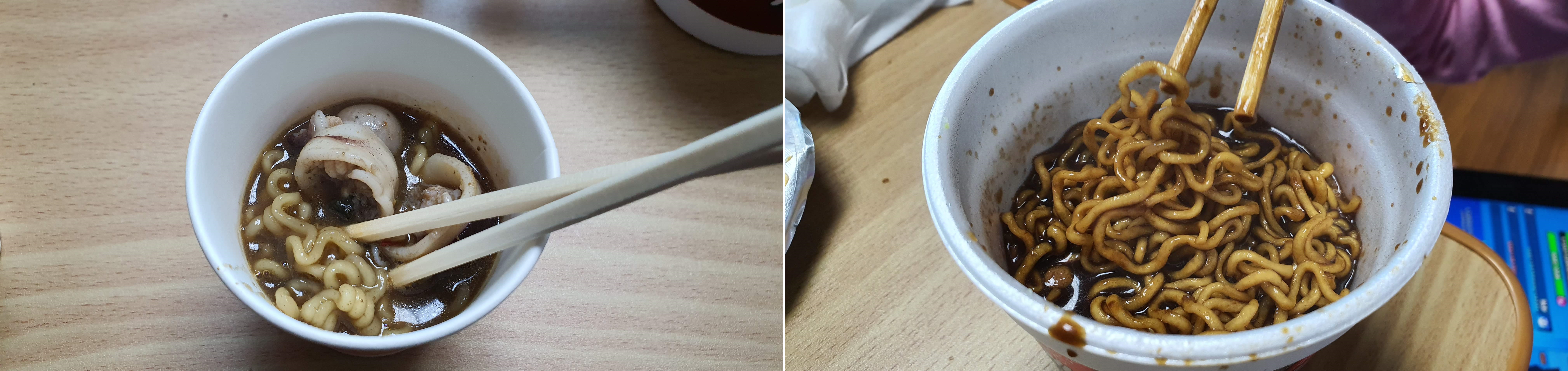 쭈꾸미 라면과 짜파게티 범벅 비교샷!