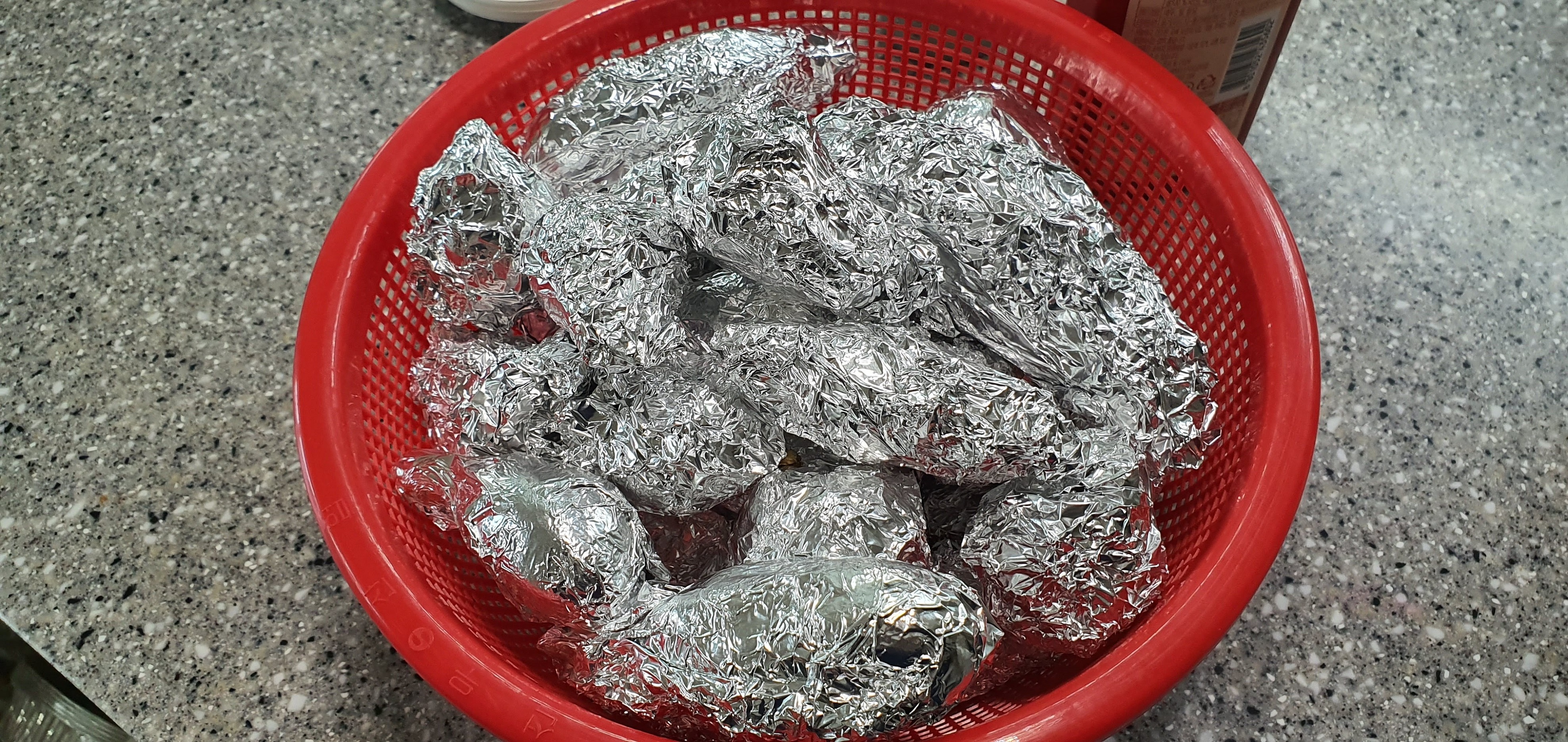 고구마가 부끄러워할까 봐 호일에 싸 놨어요. ㅎㅎㅎ