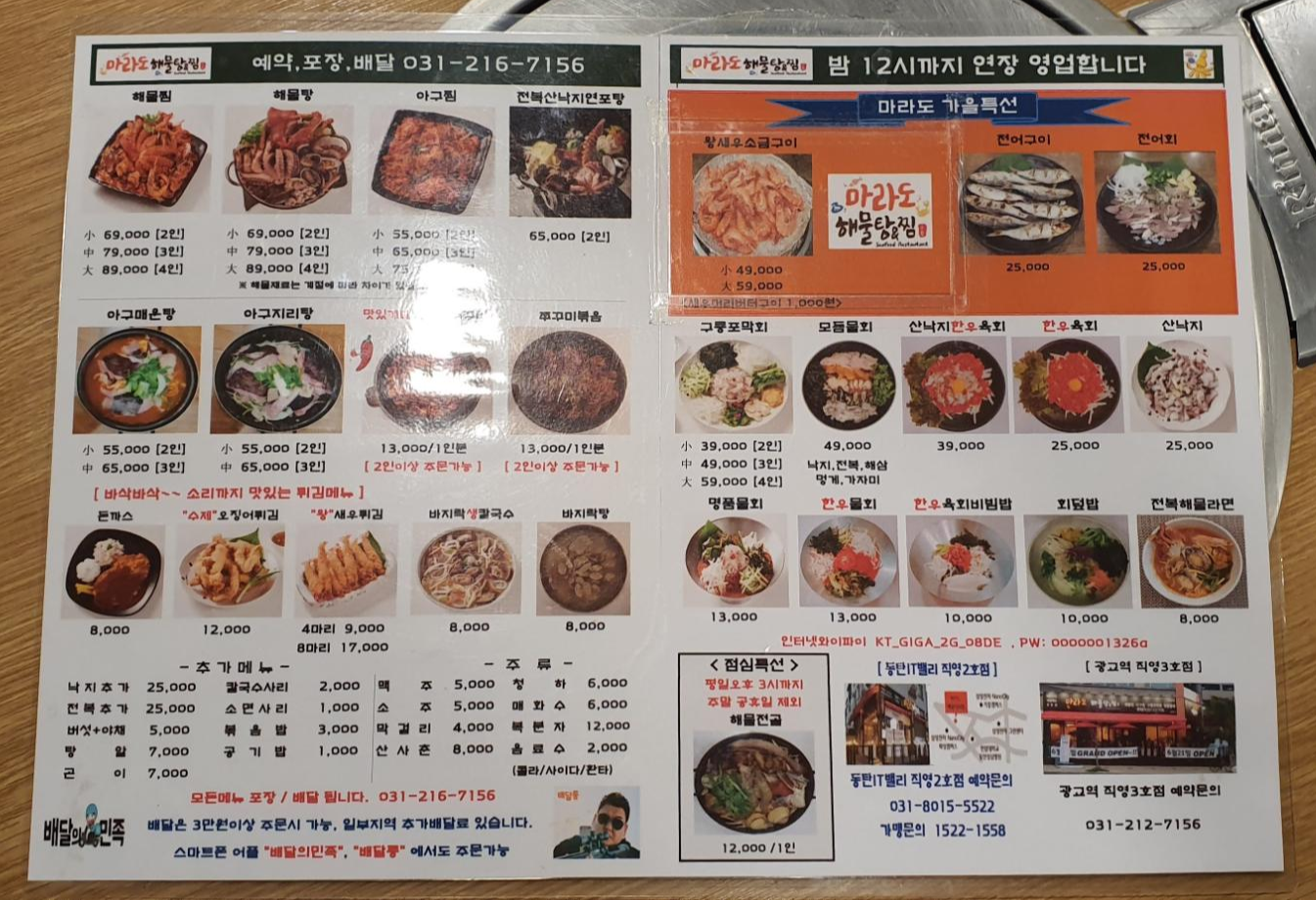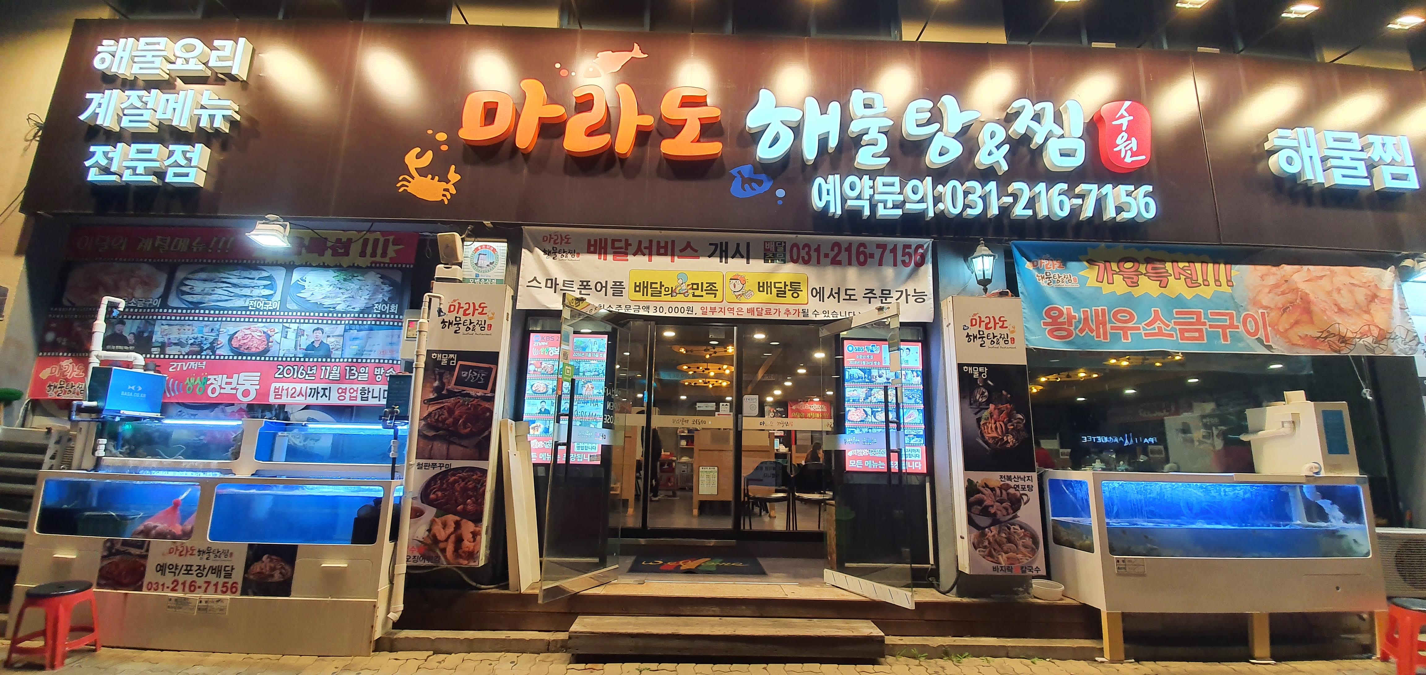 마라도 해물탕 & 찜은 본점은 수원 인계동에 위치하고 있어요.