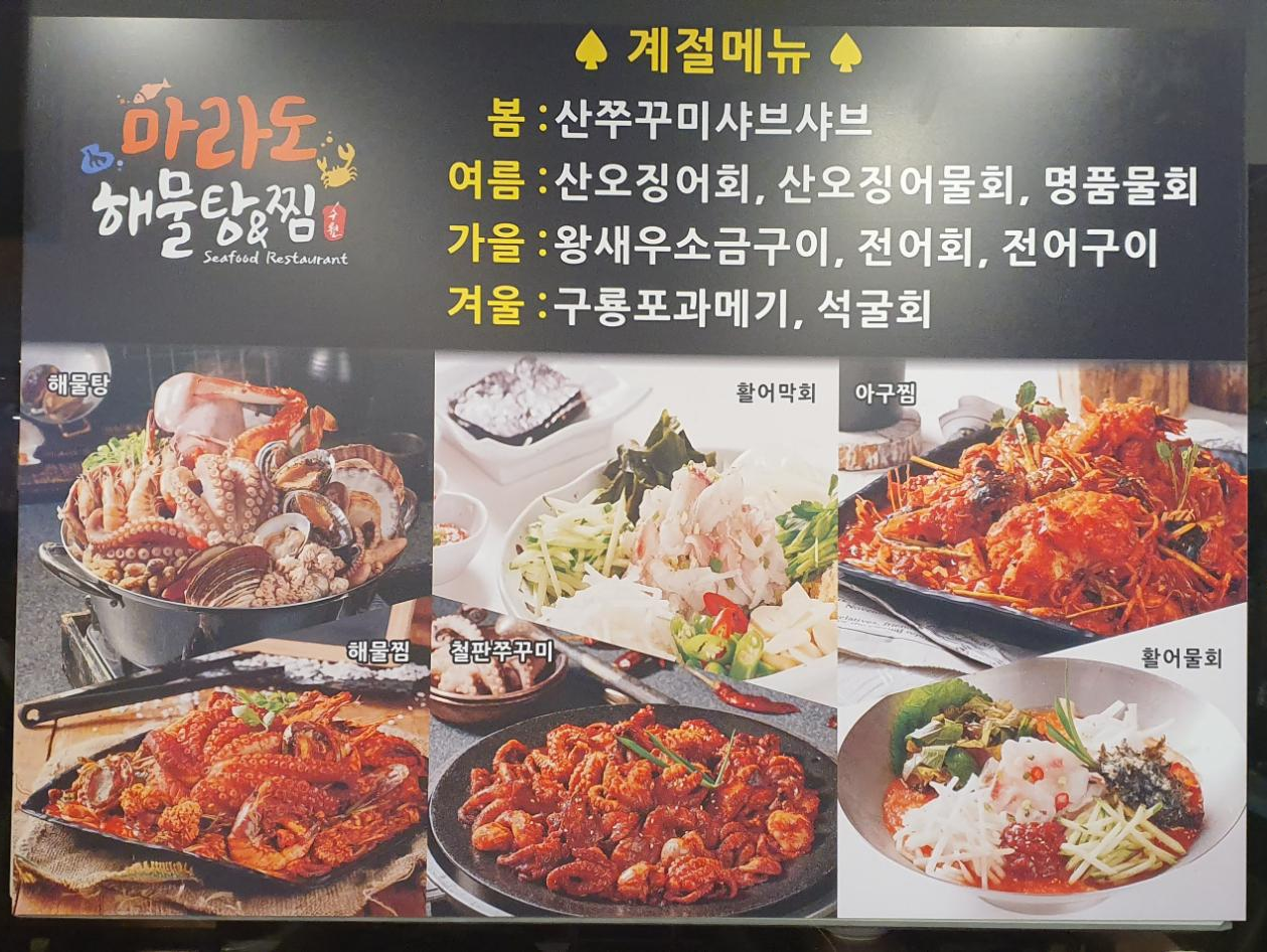 마라도 해물탕 & 찜에는 계절메뉴가 준비되어 있어요.
