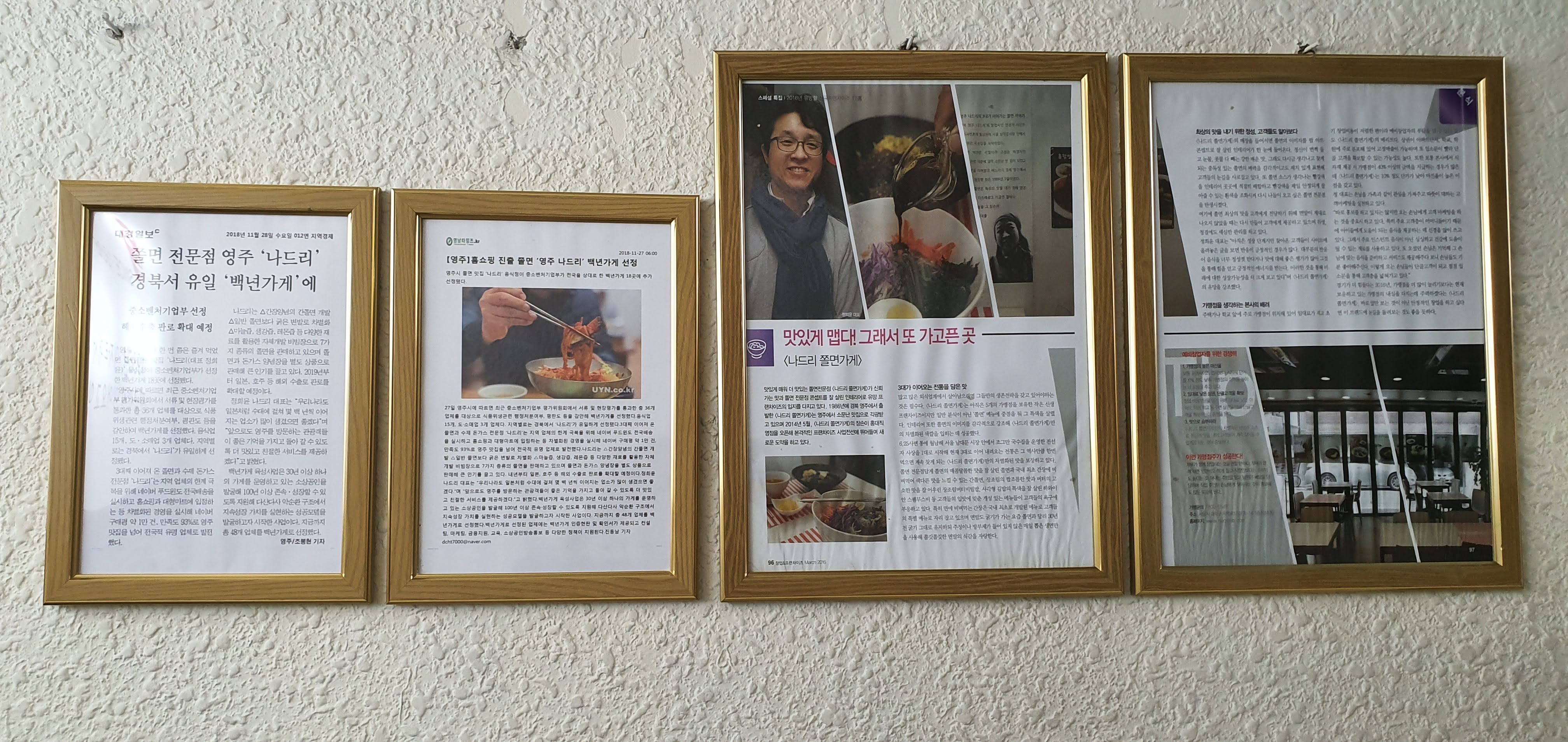 올라가는 계단에 붙어있는 나드리 쫄면 관련 기사~