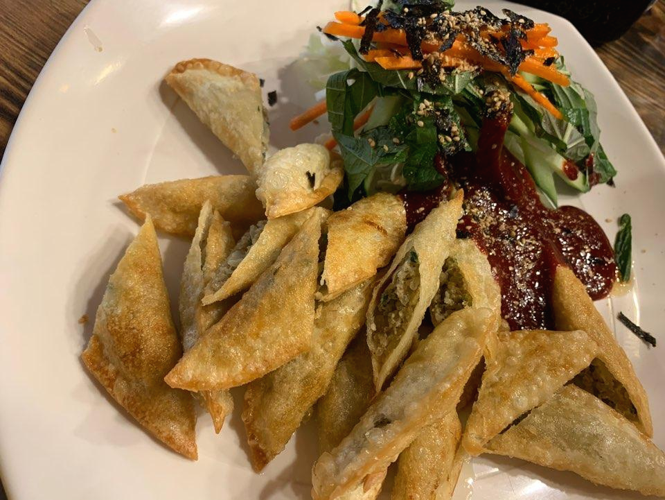 비빔만두는 튀김 만두와 야채와 양념장이 나오는데요.