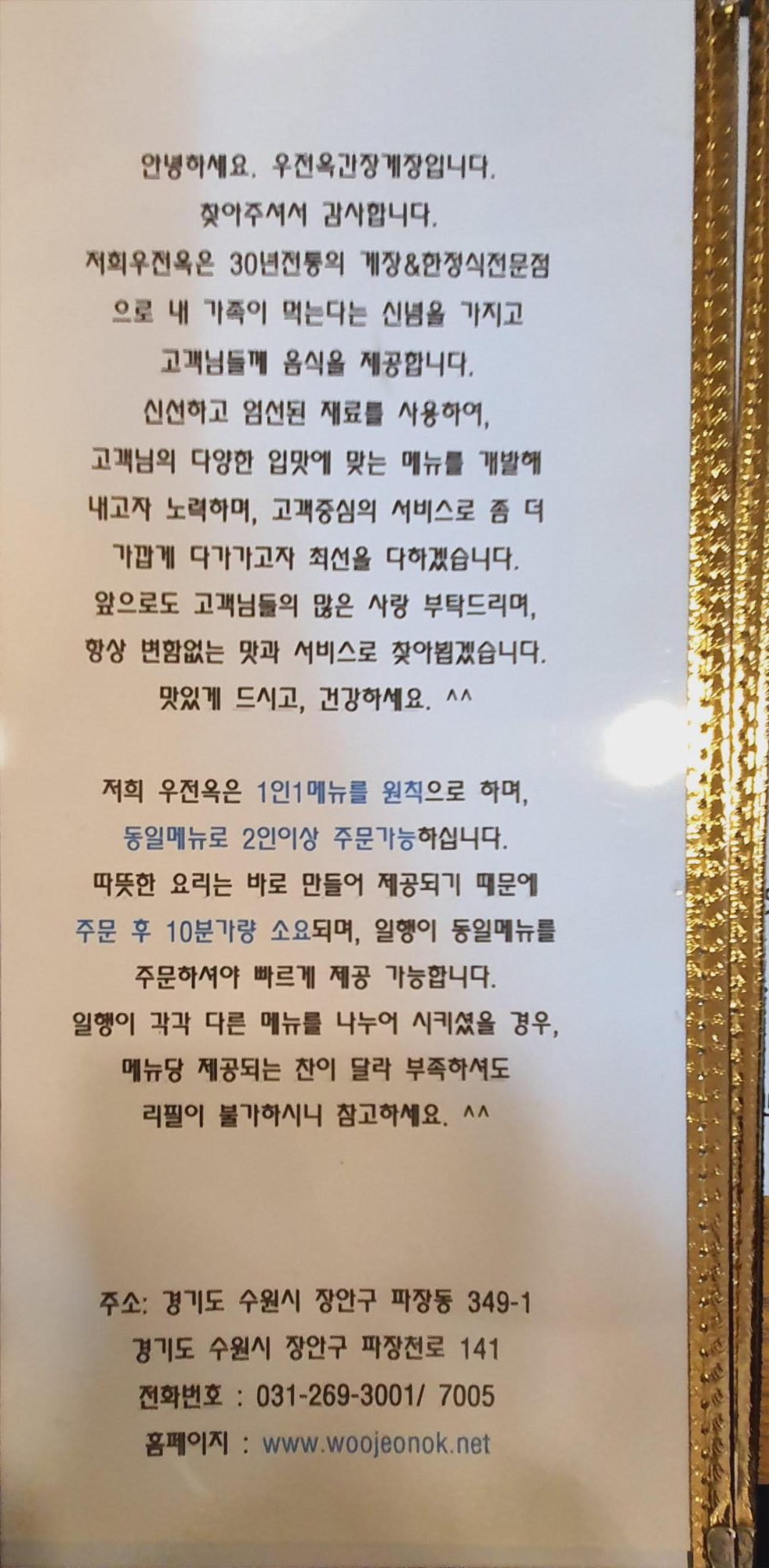 가장 먼저 보이는 것은 우전옥 간장게장에 대한 간단한 소개였어요.