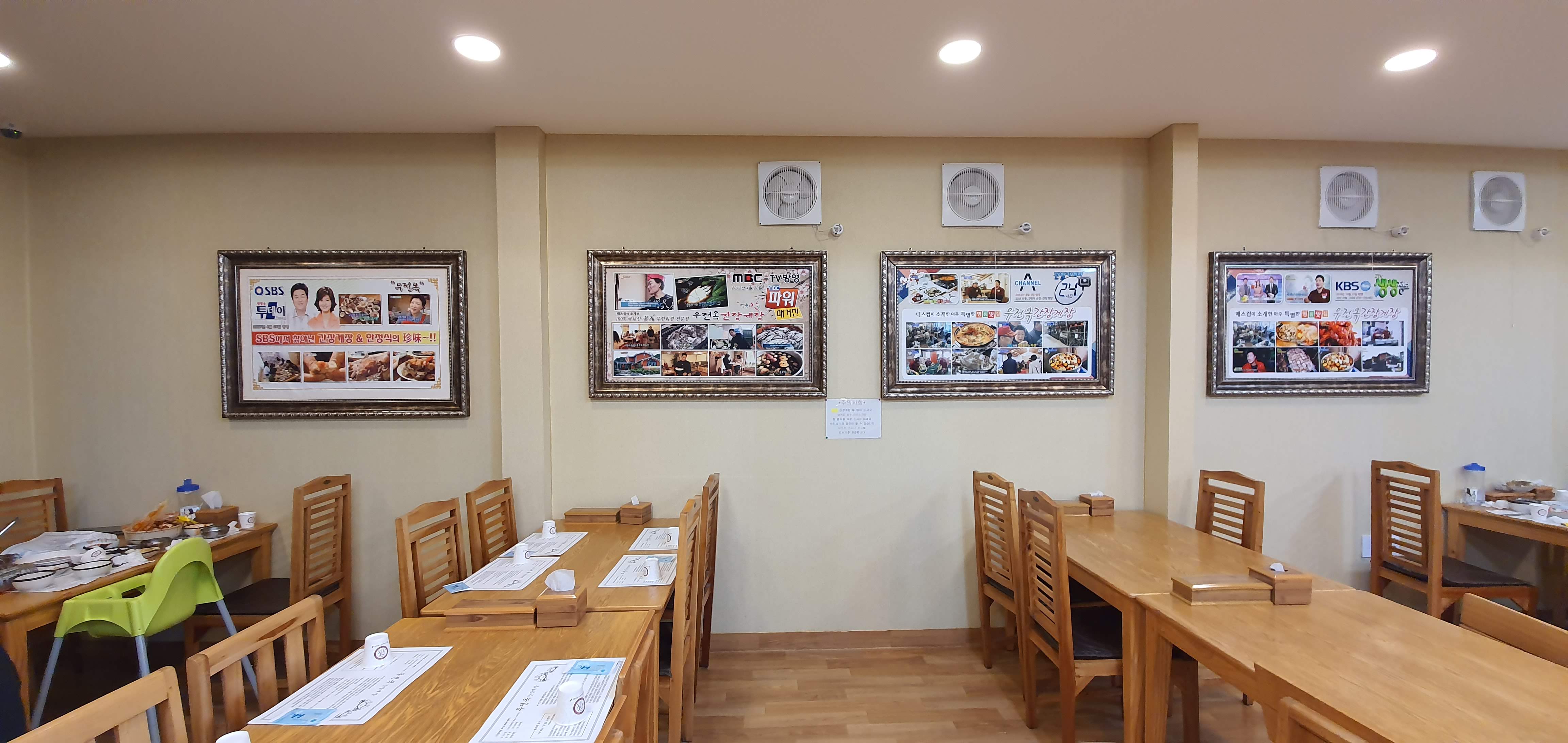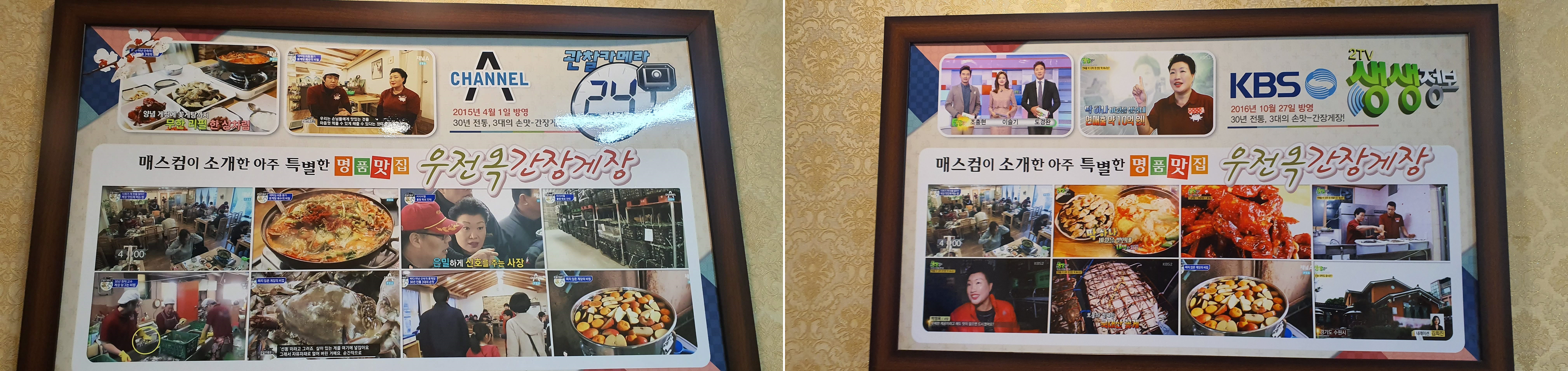 가게 한쪽 벽면에는 방송에서 나온 사진들이 걸려 있었어요.