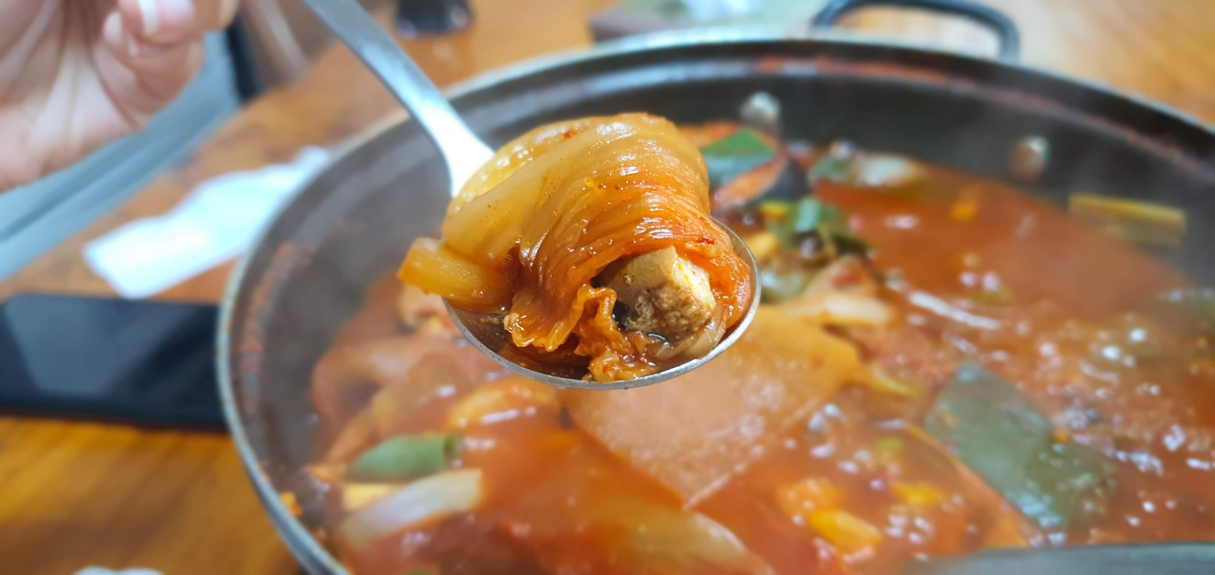 안에 들어있는 묵은지와 조림에서 빠질 수 없는 무가 살도 토실토실 푸짐한 고등어와 너무 잘 어울려요. ㅎㅎㅎ