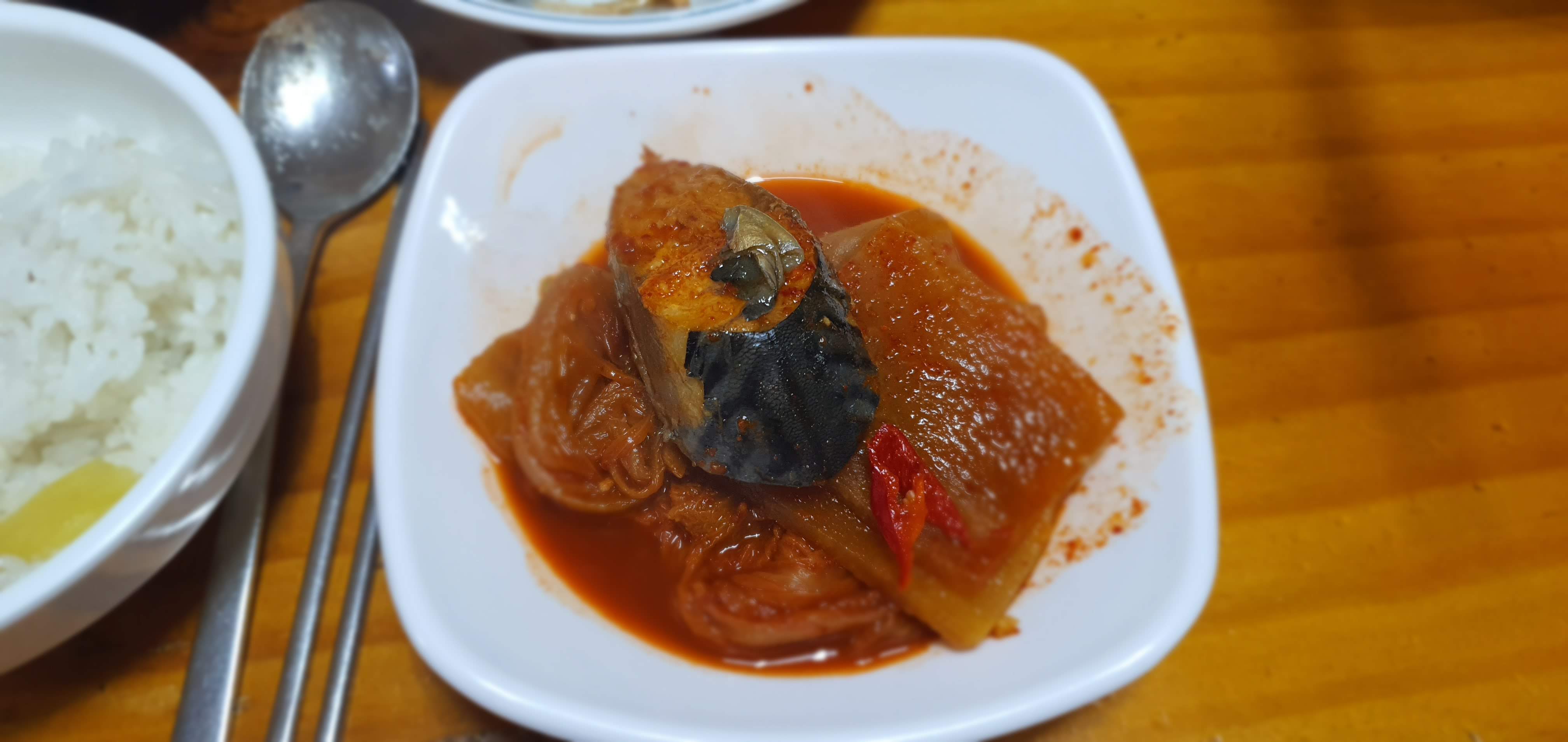 고등어 조림 국물이 정말 맛있어요. 매콤한 듯하면서도 얼큰하고,