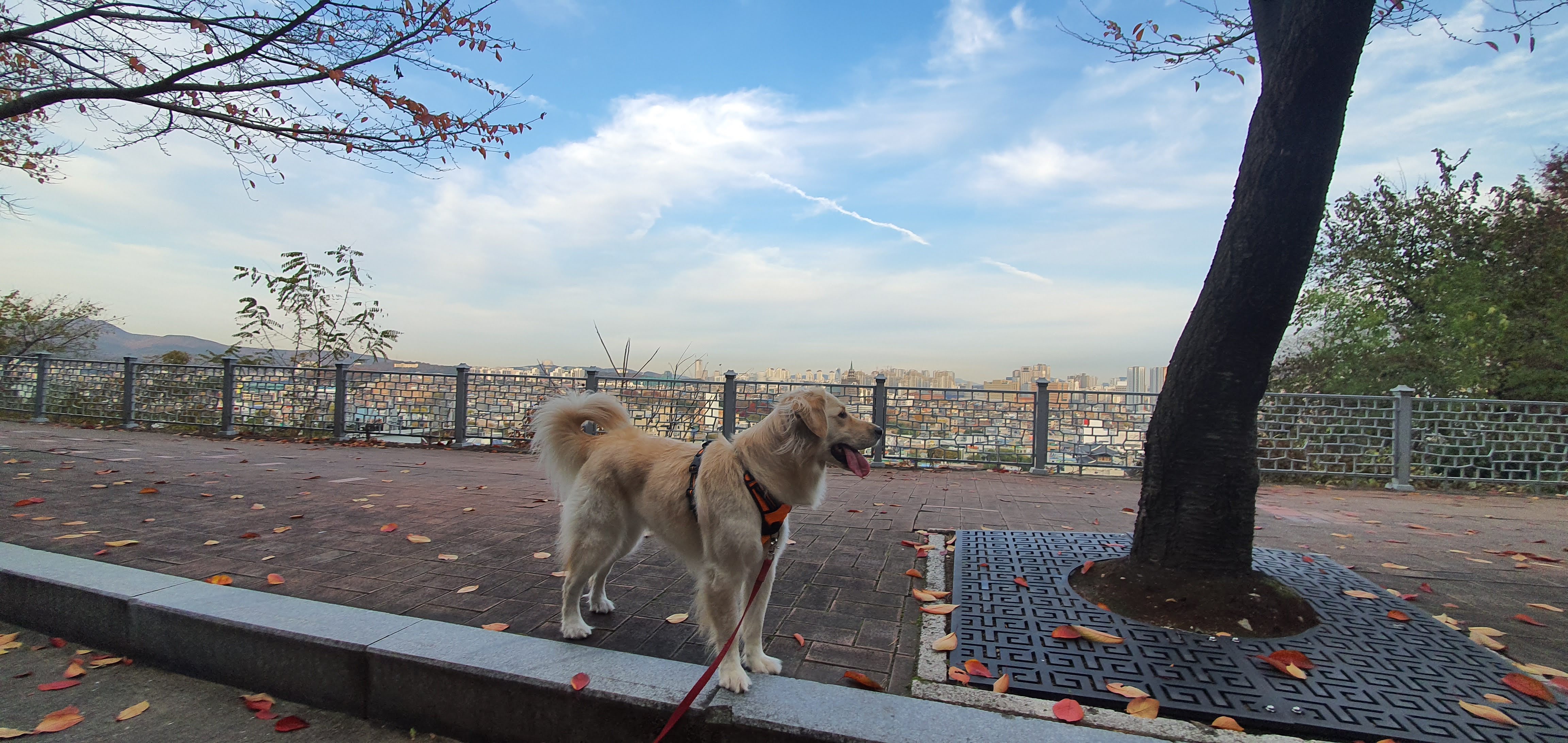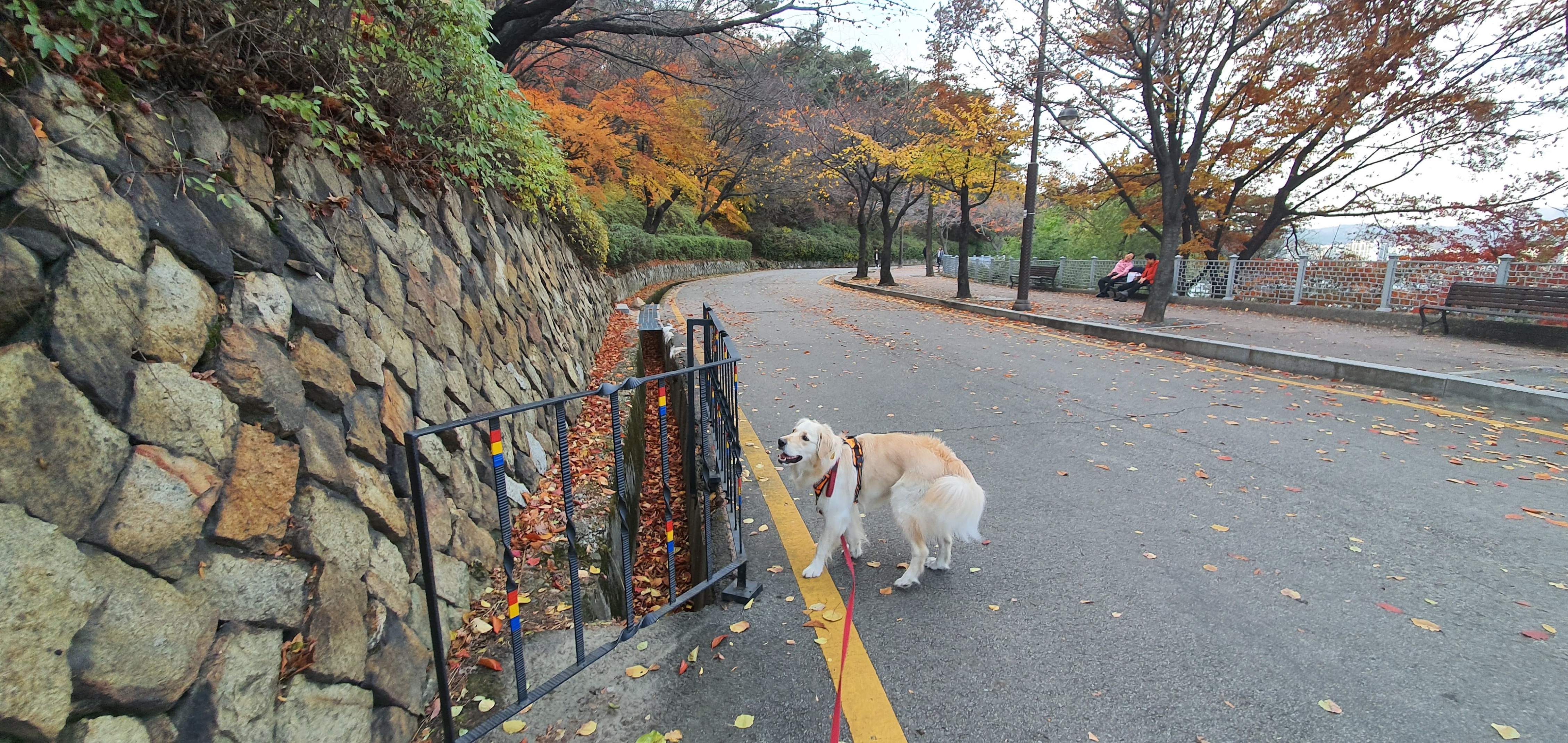 저도 산책하는 것을 엄청 좋아하고, 아라도 산책을 엄청 좋아해요. ㅎㅎㅎ