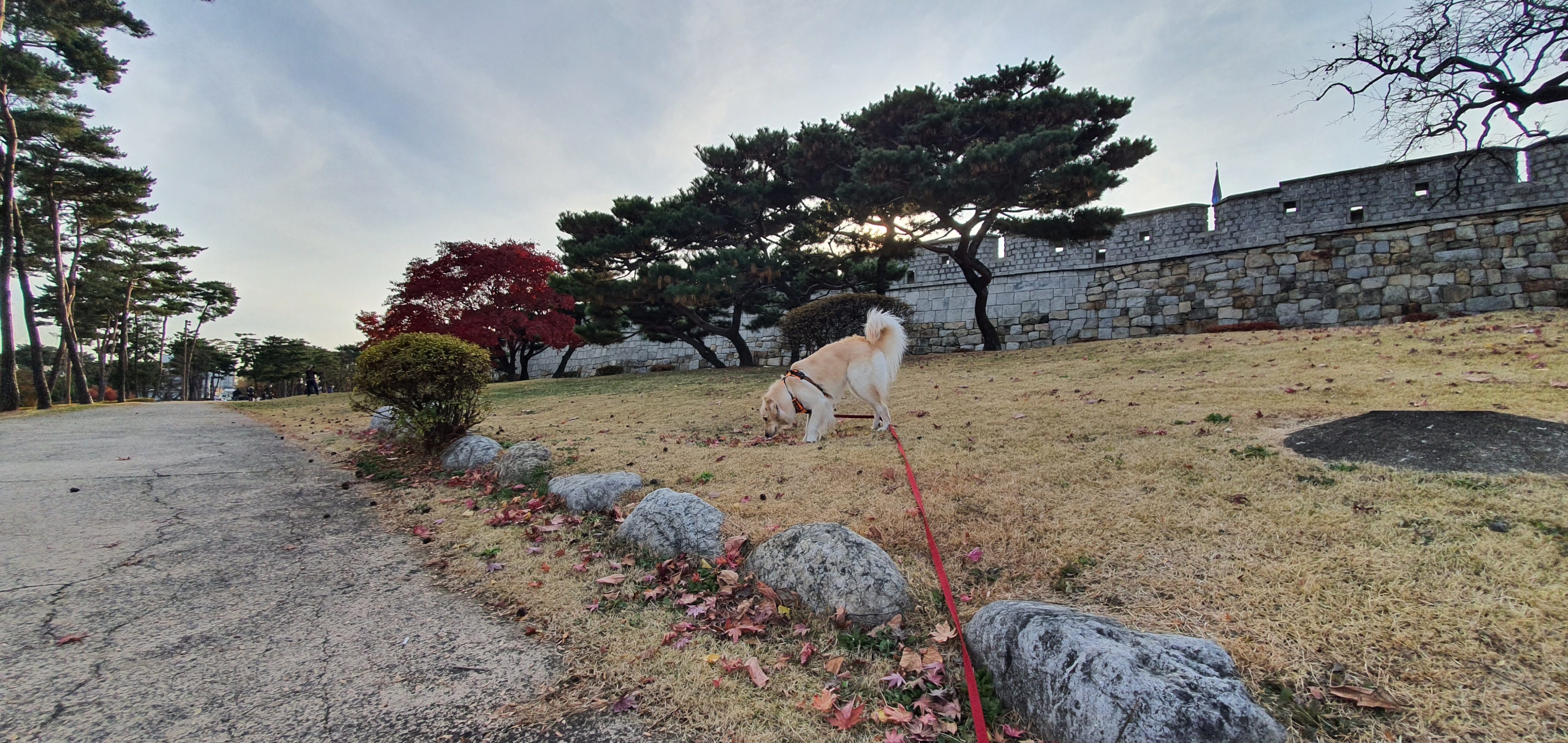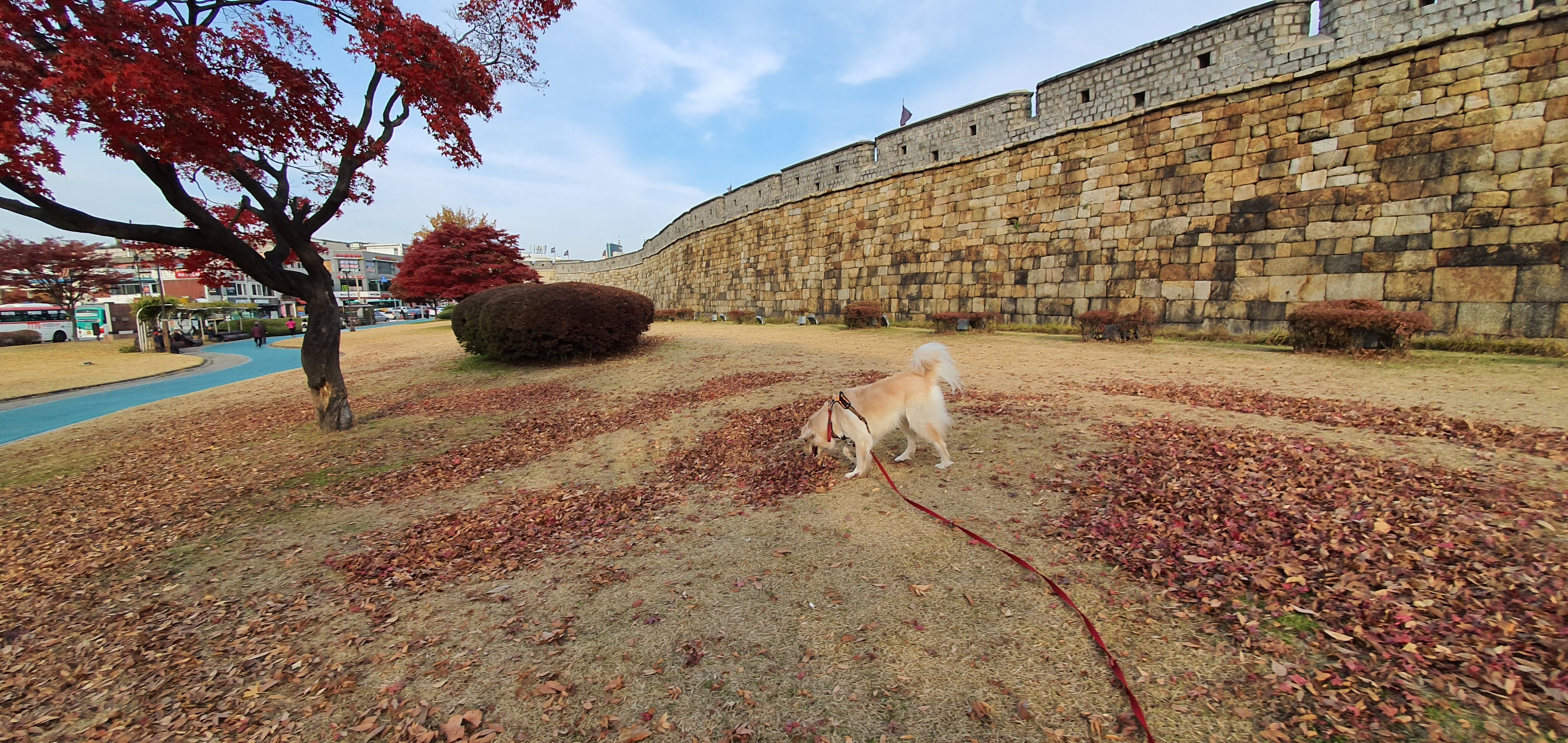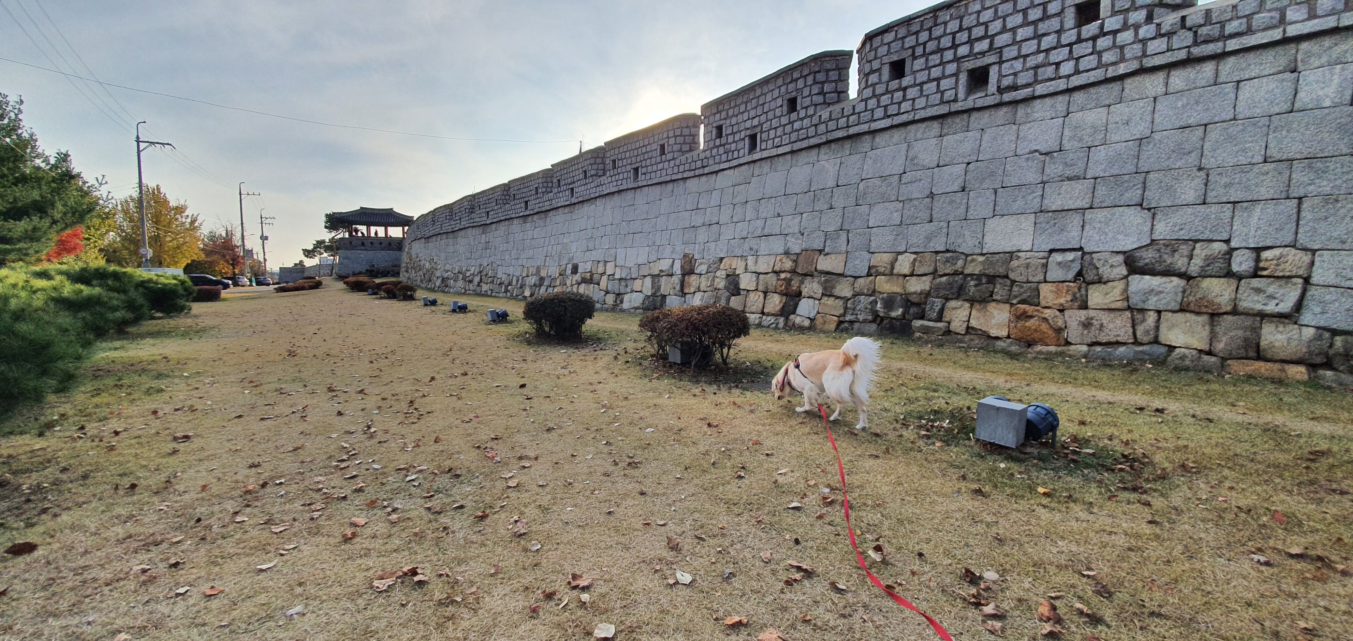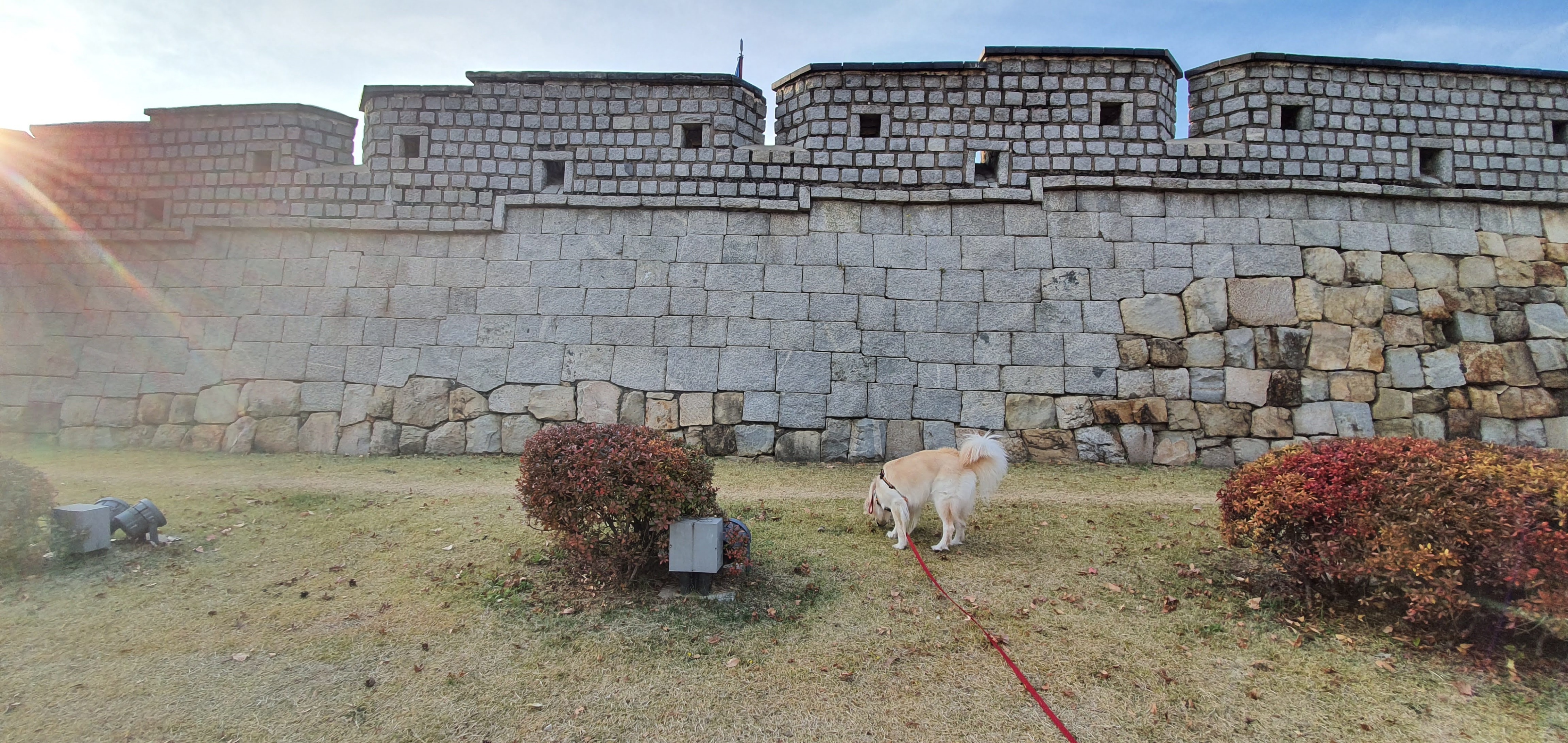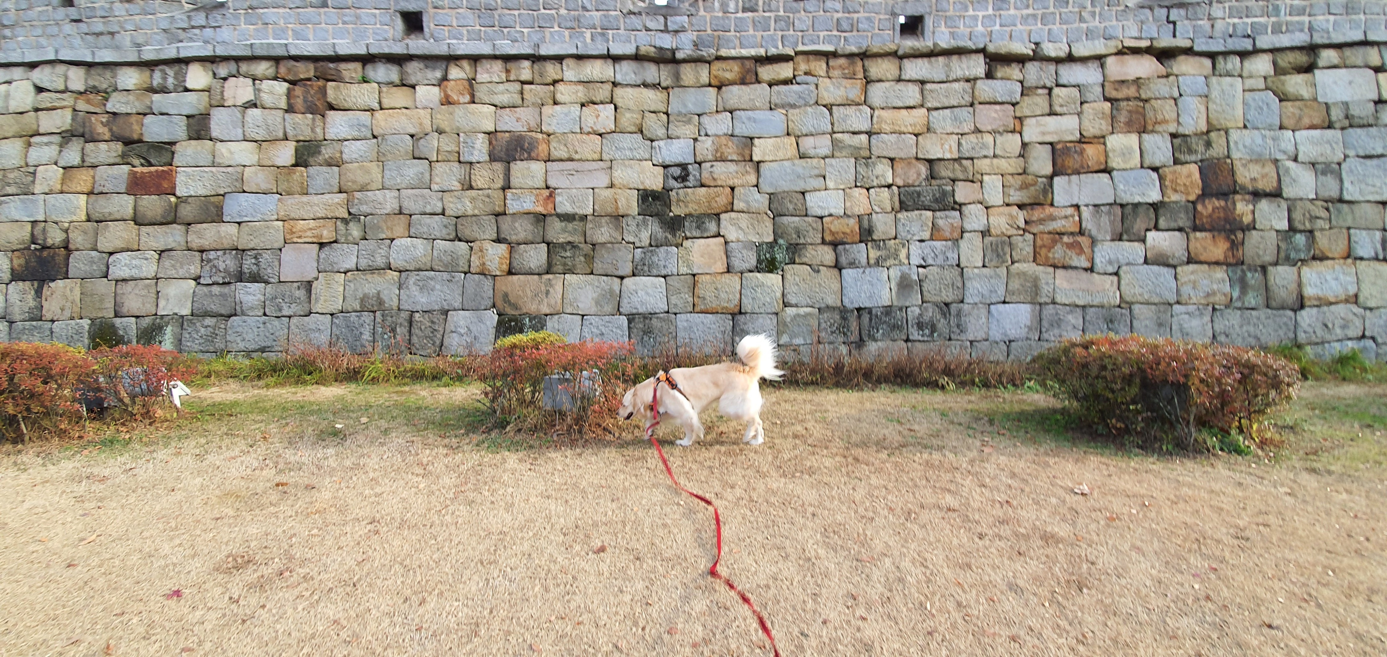 아라와 산책을 자주 하는 장소 중의 하나로 가끔 아라와 성곽을 쭈~~ 욱 돌 때도 종종 있어요. ㅎㅎ