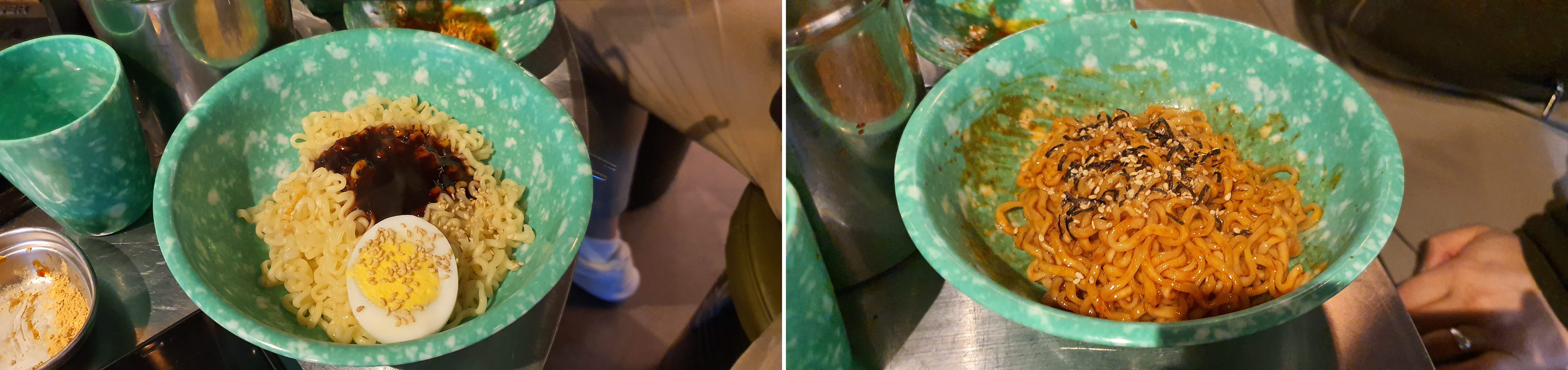 달걀도 들어가서 소스와 같이 비벼 먹었는데요.