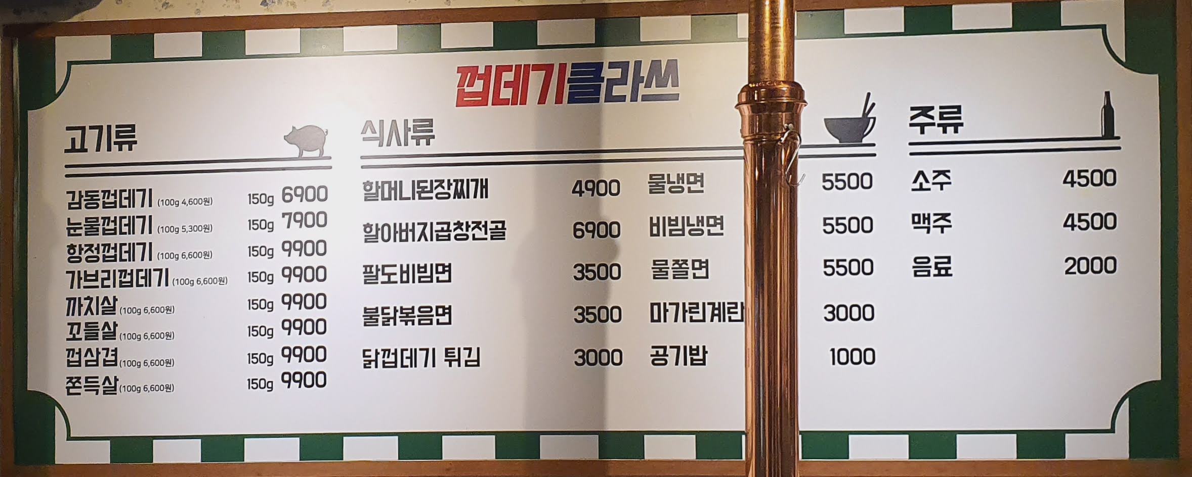 껍데기 클라스 성균관대점 메뉴 및 가격