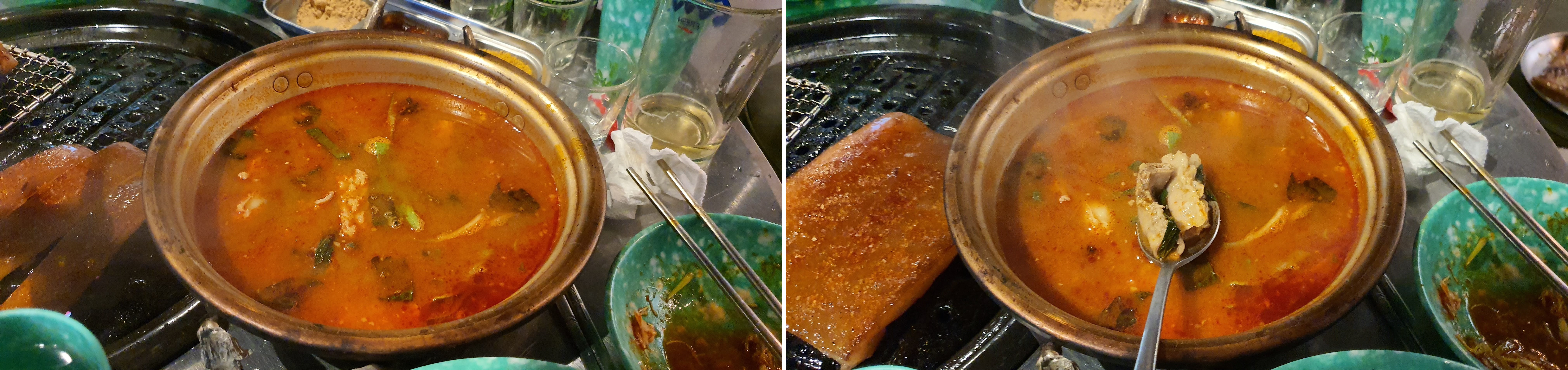전골 냅비를 불판에 얹어도 되는지 양해를 구하고,