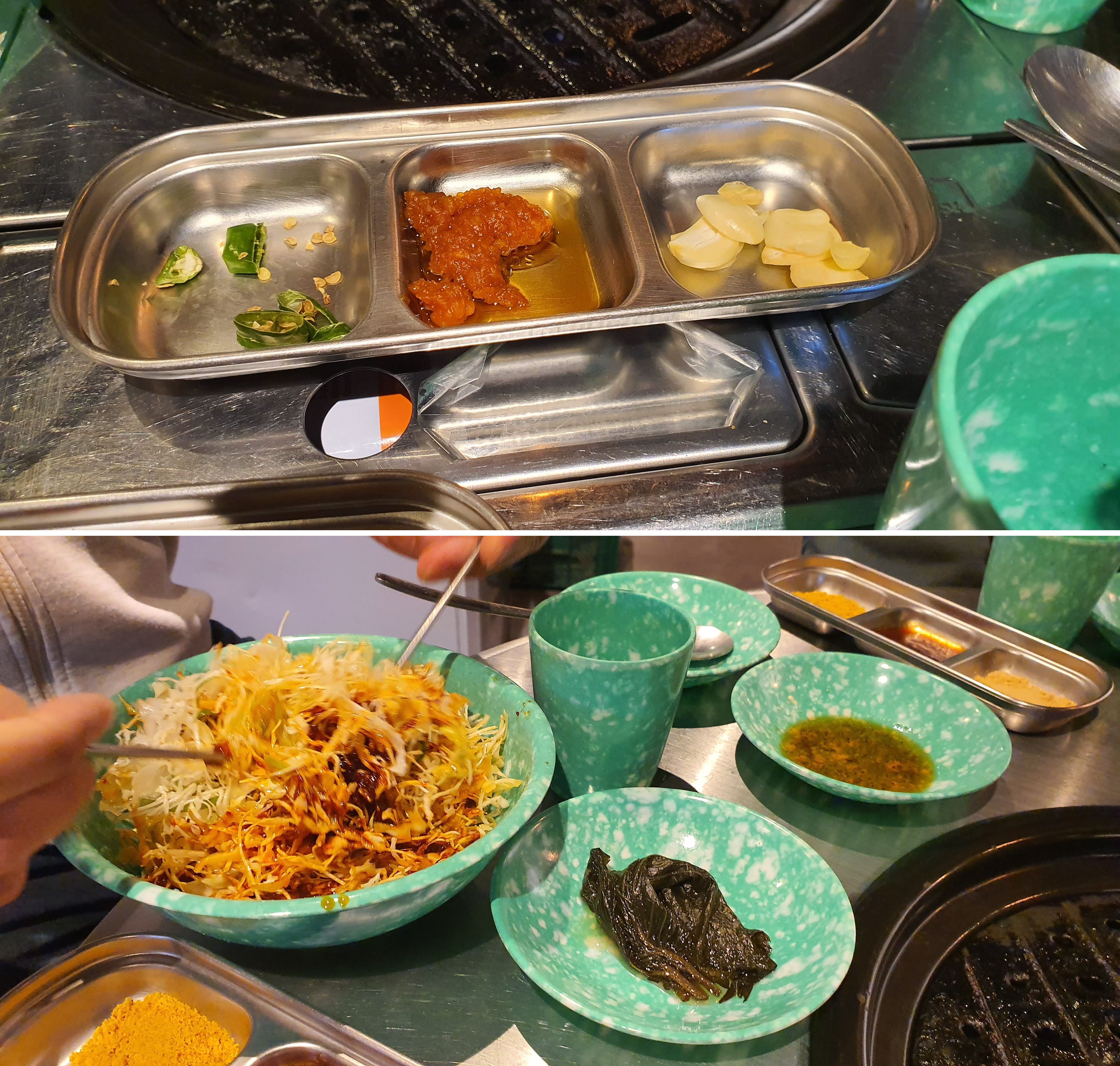 쌈장, 고추, 마늘, 소금장, 양배추 버무림, 깻잎