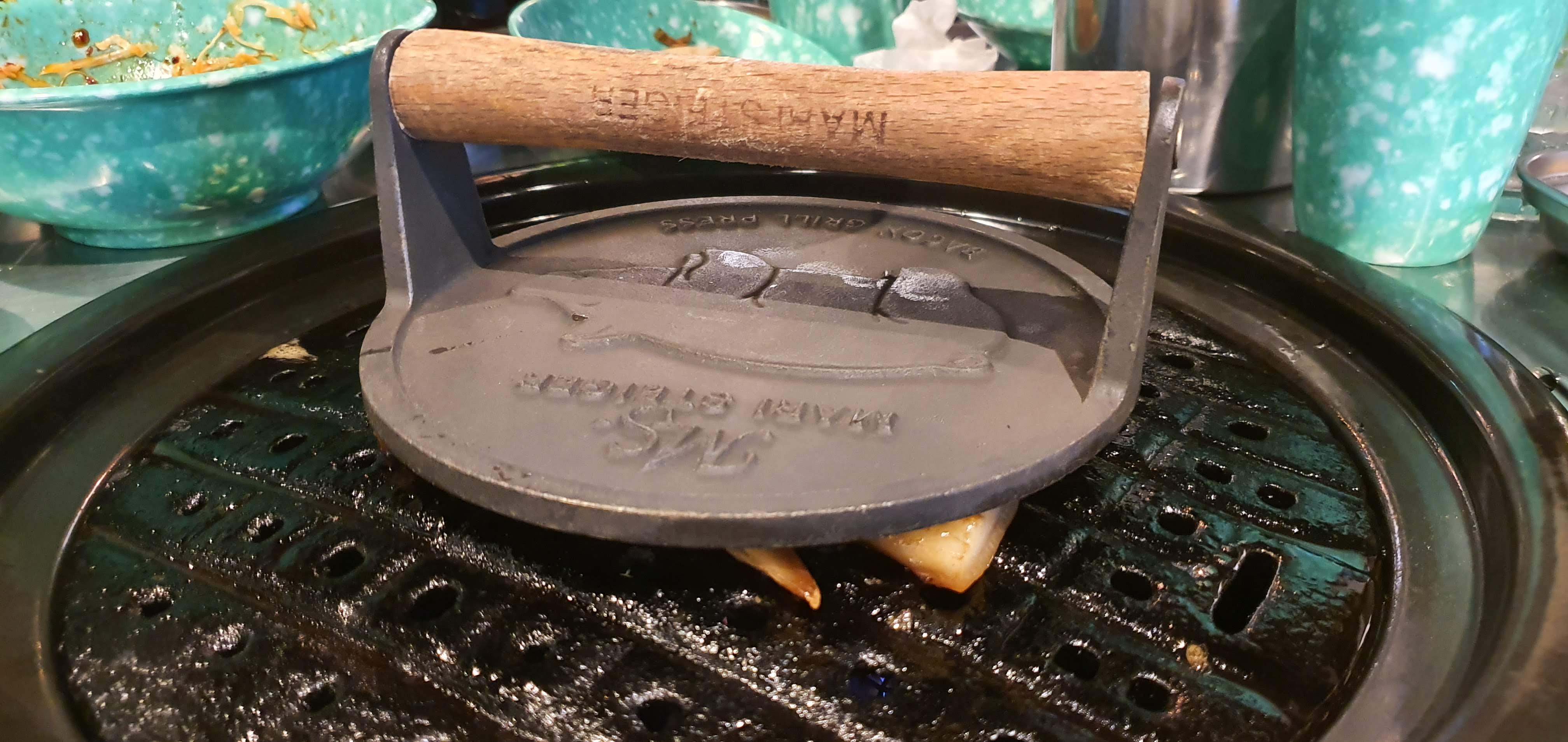 껍데기를 구우면서 말리는 것을 방지하기 위해서 구울 때 껍데기를 눌러주는 도구가 있어요.^^
