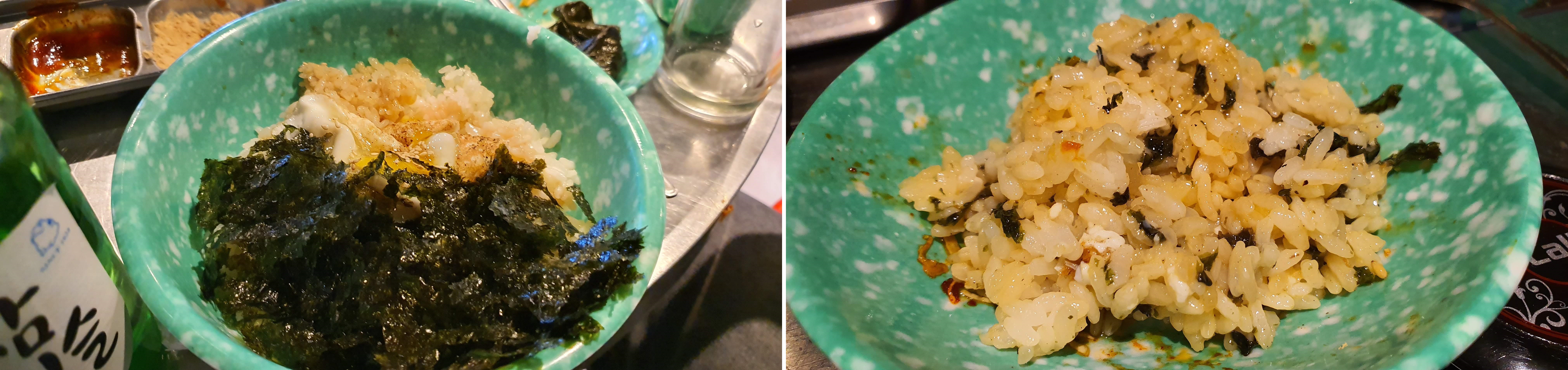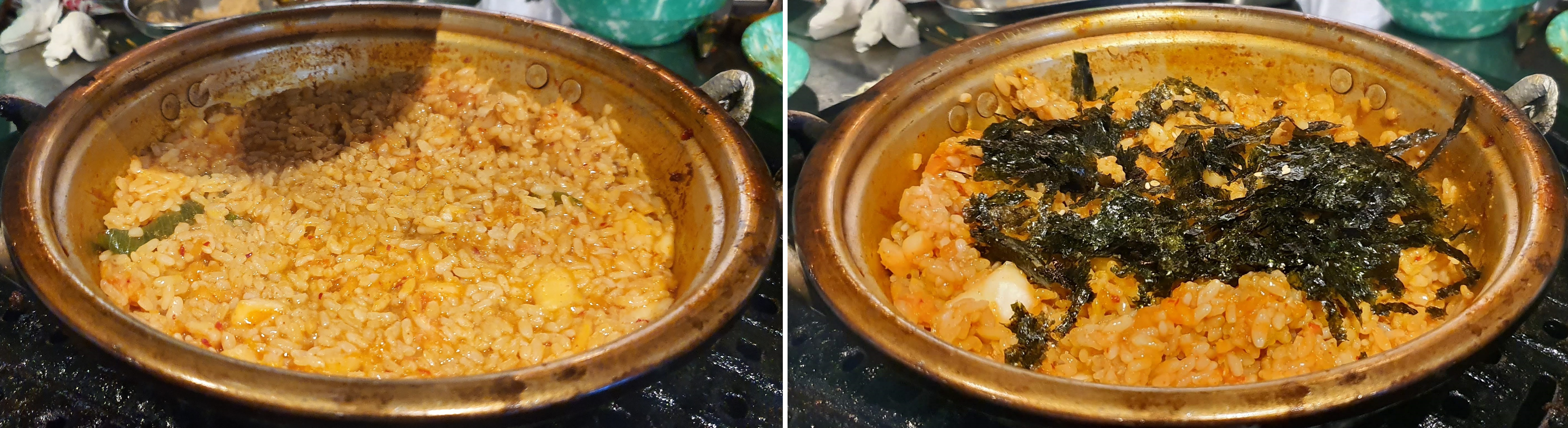 공기밥을 시키고 김가루를 얻고, 김치를 가져와서 할아버지 곱창전골에 셀프 볶음밥!! ㅋㅋㅋ