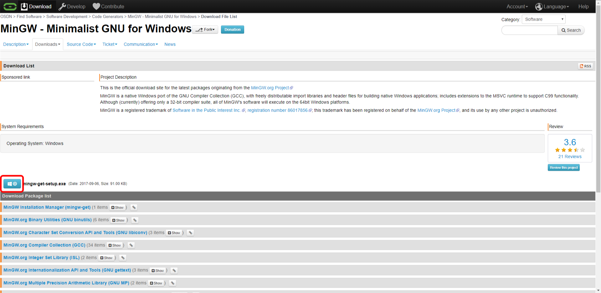 MinGW는 사이트에서 다운로드를 할 수 있습니다.