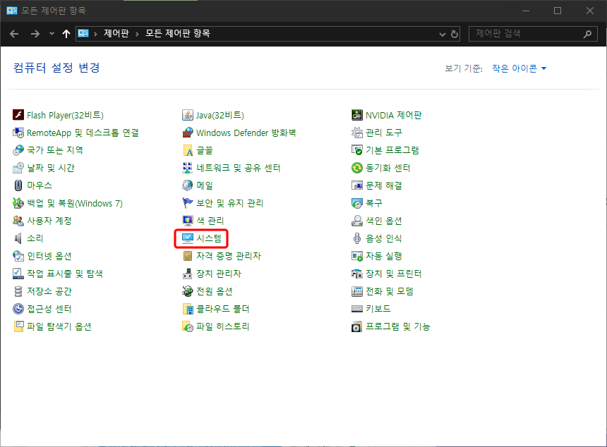 '제어판 > 모든 제어판 항목 > 시스템'으로 들어가셔도 되고,