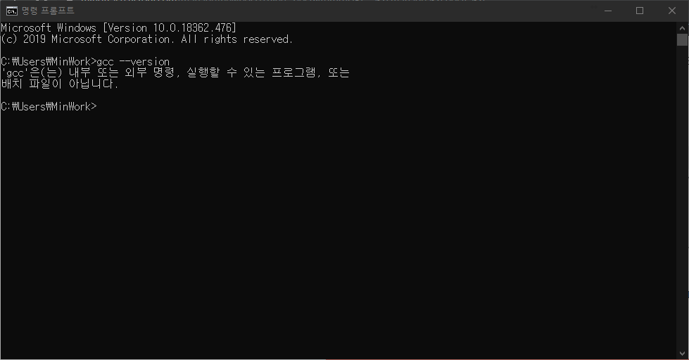만약 환경 변수 path가 제대로 설정이 안 되었다면 아래와 같은 화면이 출력됩니다.
