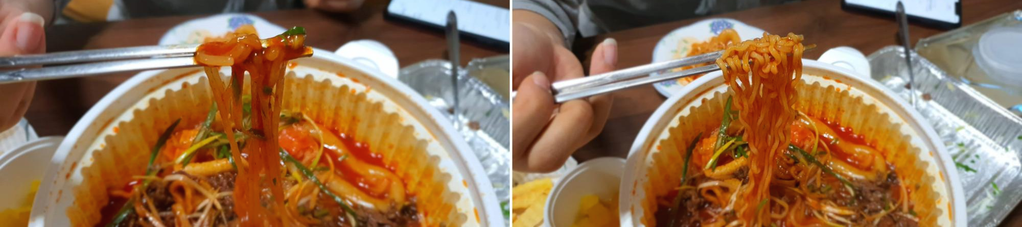 저희는 기본 라면 사리가 들어 있었지만, 탱탱 쫄면도 먹고 싶어서 추가를 했었어요.