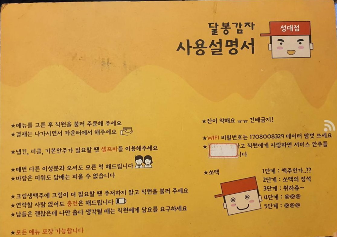 수원 성균관대점 달봉 감자는 성균관대역에서 걸어서 10분 있어요.