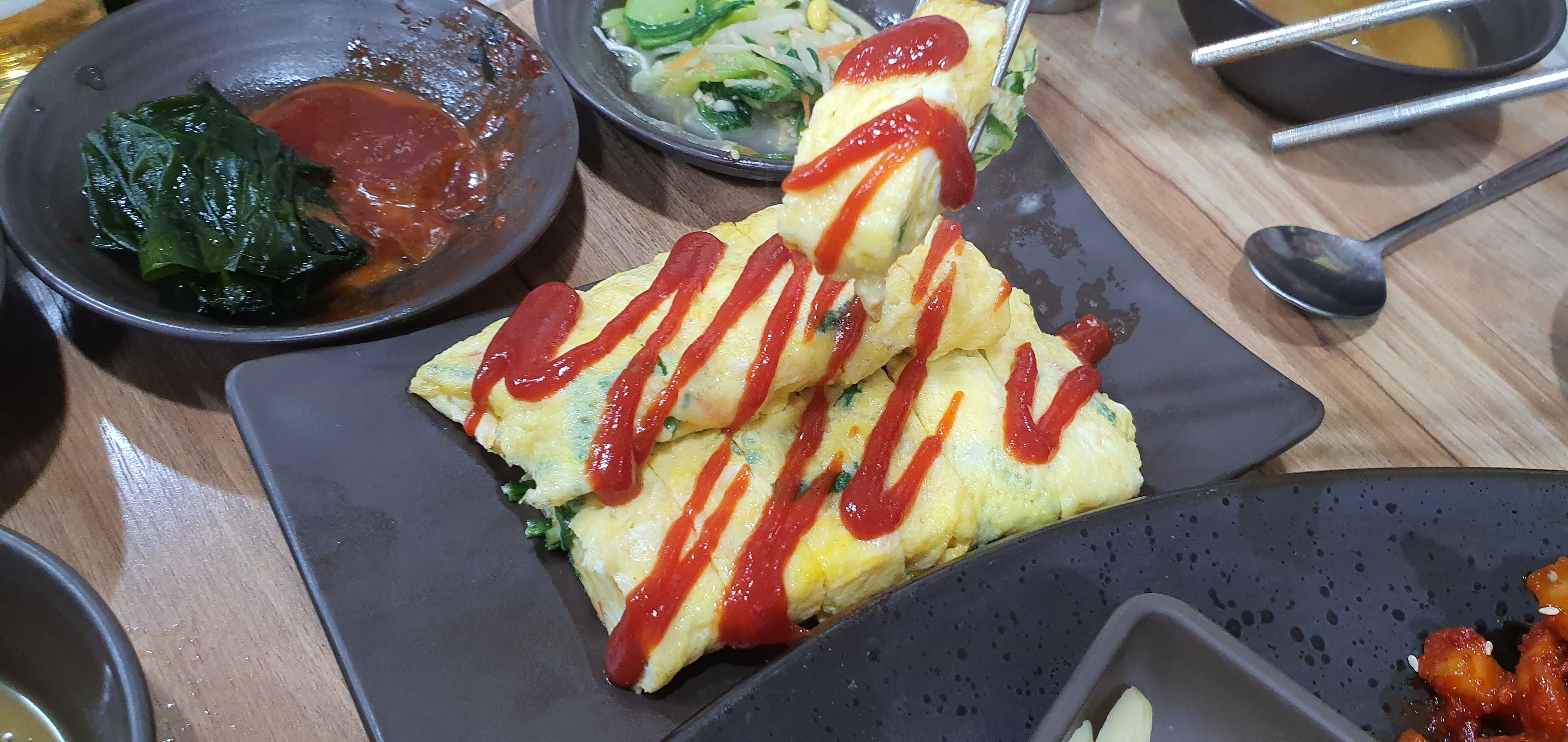 방문 전부터 정해진 메뉴인 굴보쌈과 추가로 쟁반국수, 계란말이를 시켰어요.
