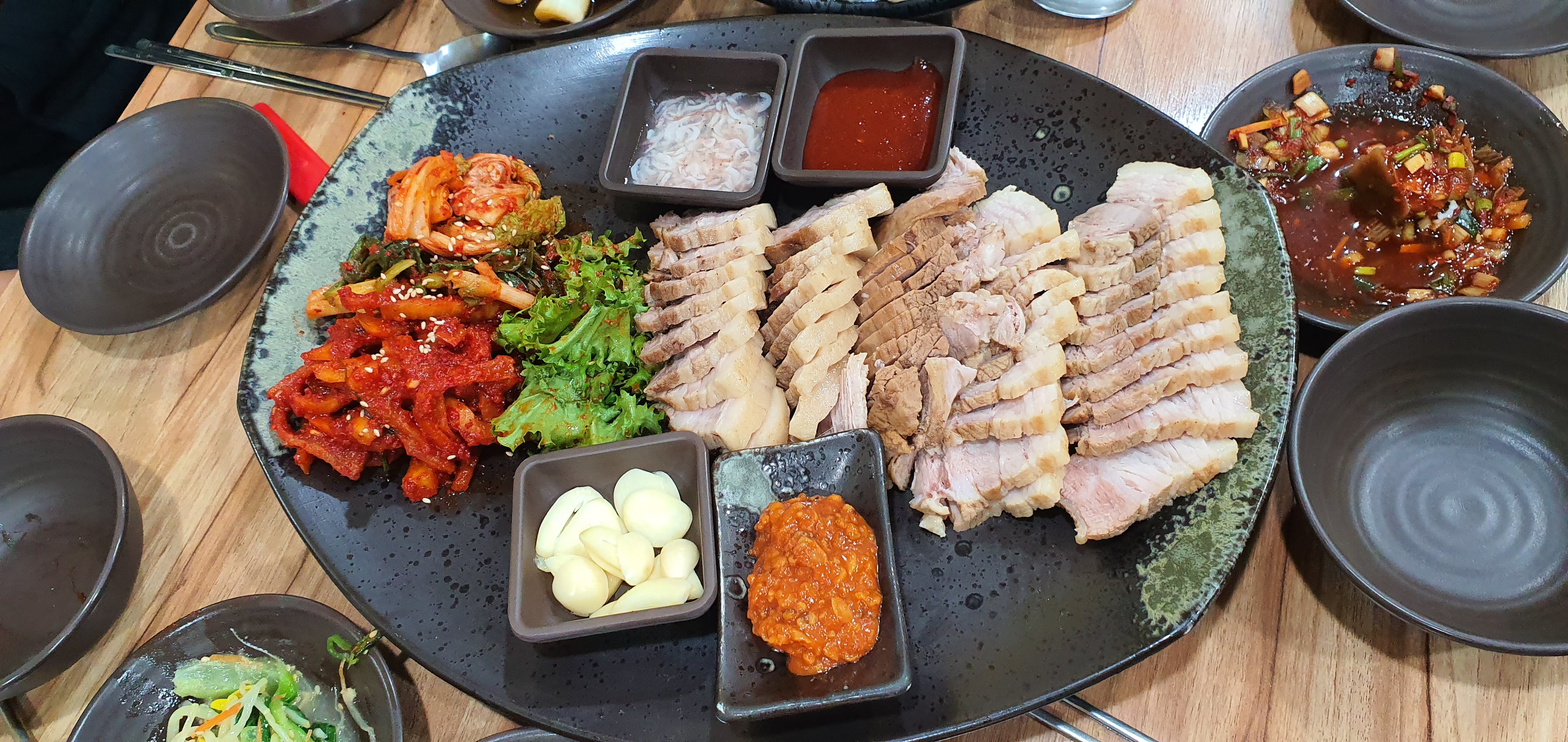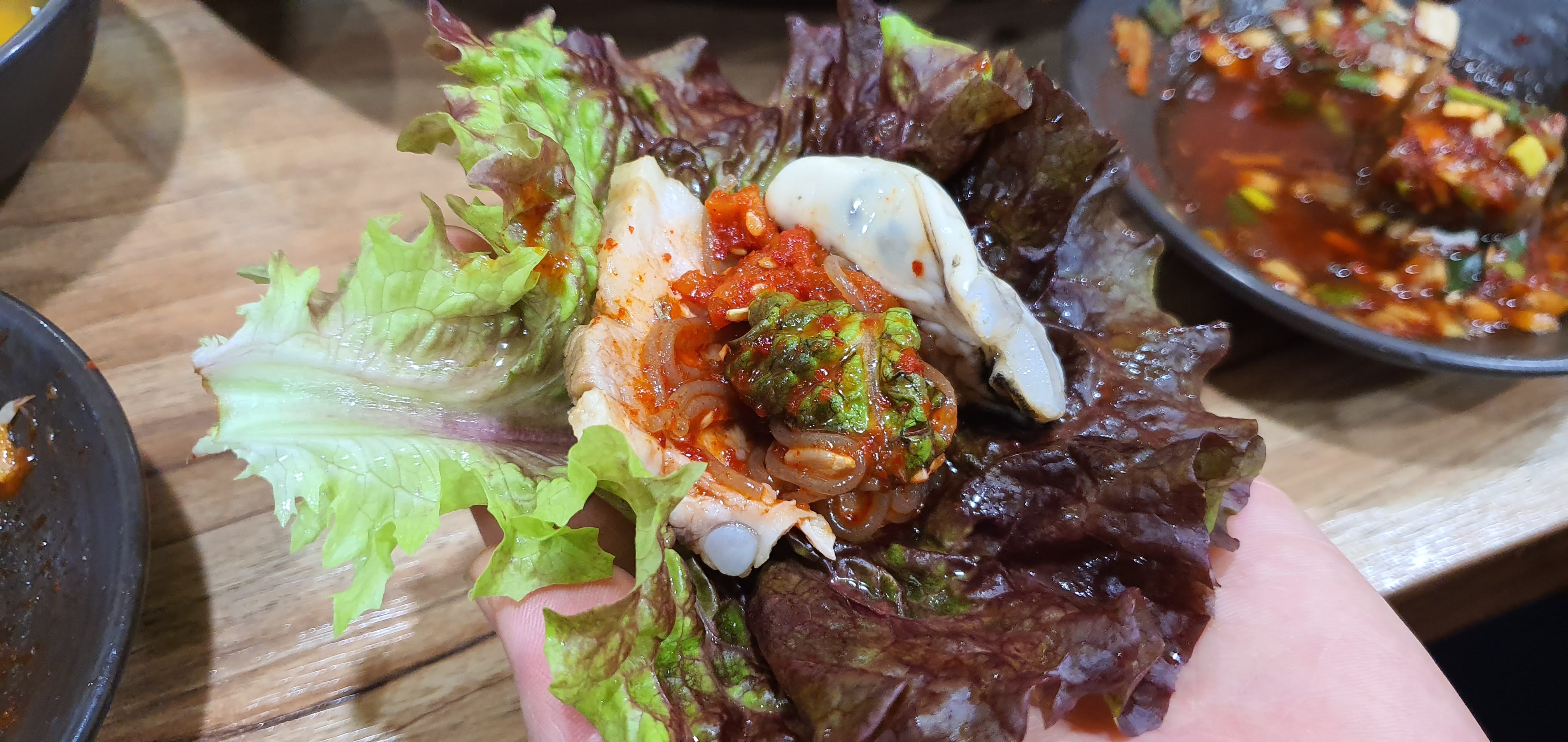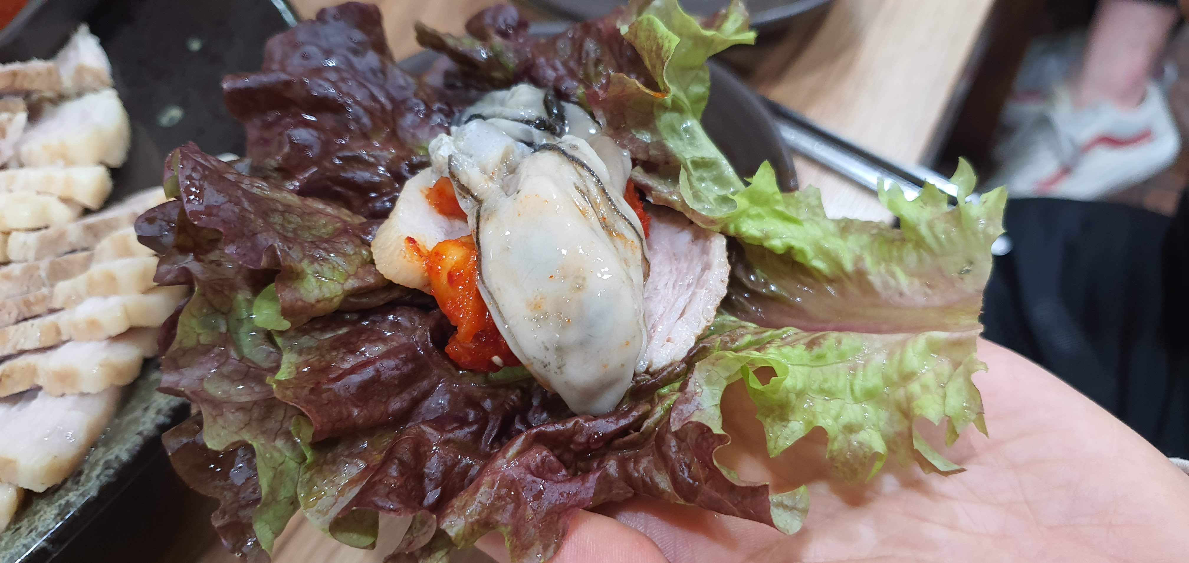 그래도 상추에 보쌈과 굴을 올려서 먹으니 야들야들한 고기와 싱그러운 굴은 맛있었어요.