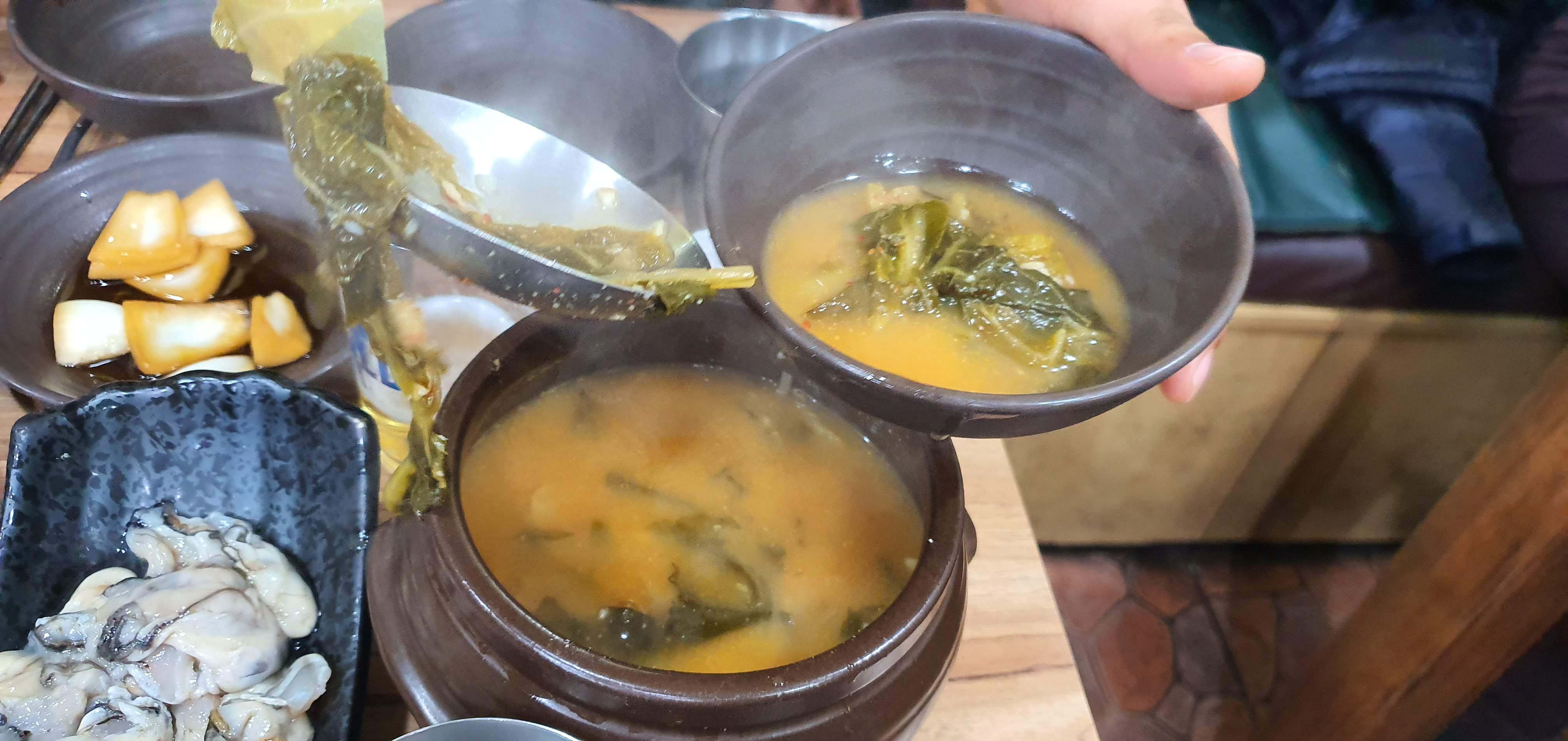 떠먹을 수 있게 항아리에 나온 된장국!