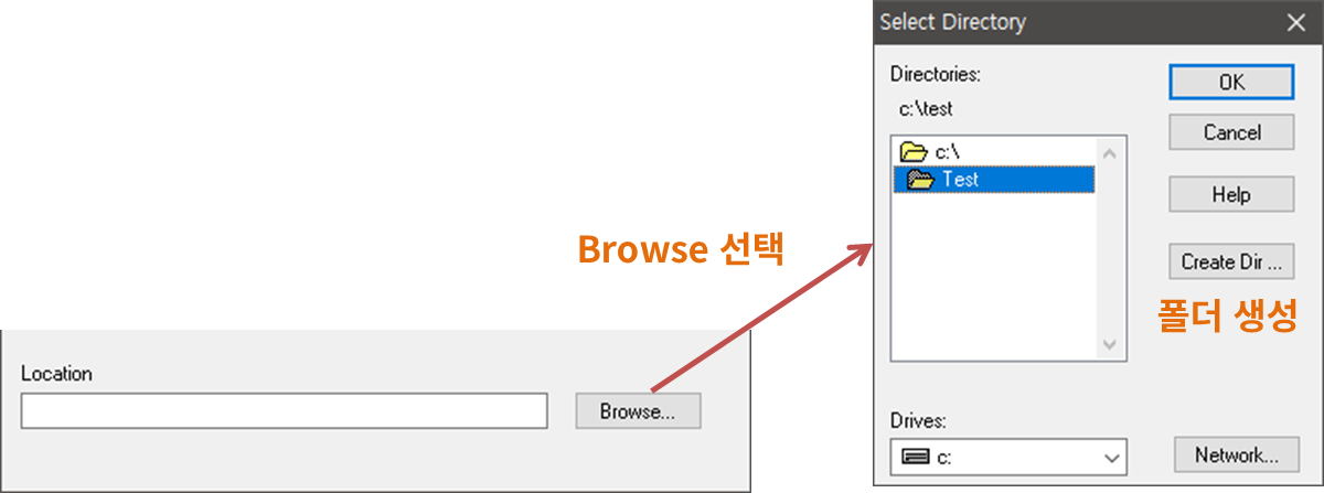 저는 Schematic Project 생성 테스트를 보여 드리기 위해 파일 위치의 Browse를 선택하여 Test 폴더를 생성했습니다.