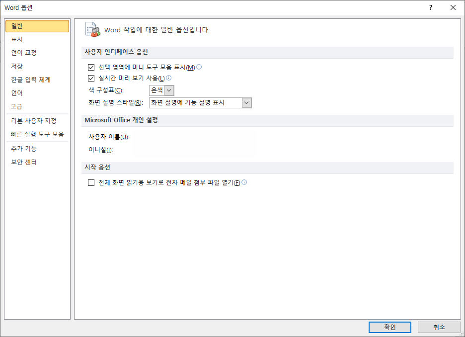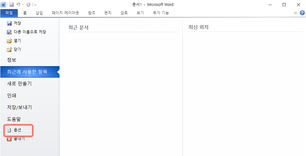 워드(Word) 옵션 설정 진입 : 파일 > 옵션