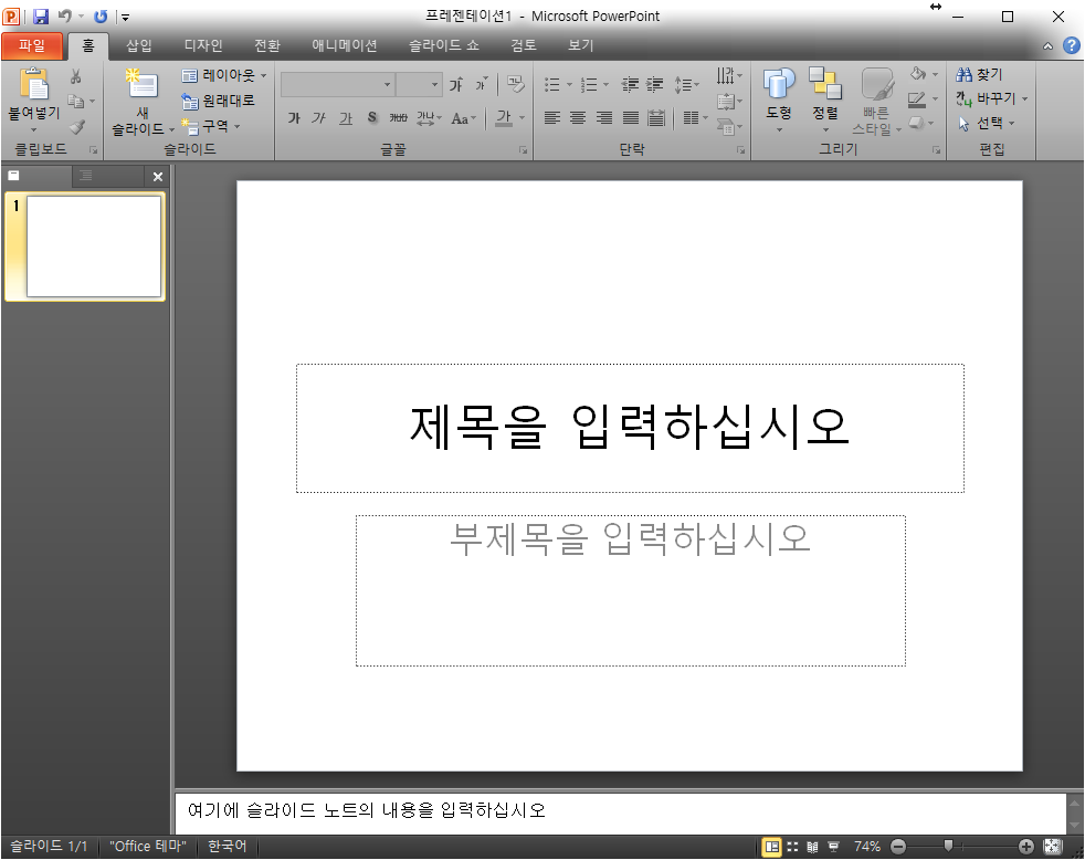 어느 제품을 변경해도 제품 모두가 적용되기 때문에 대표로 파워포인트(PowerPoint)의 '색 구성표의 색상'을 변경해 보도록 하겠습니다.