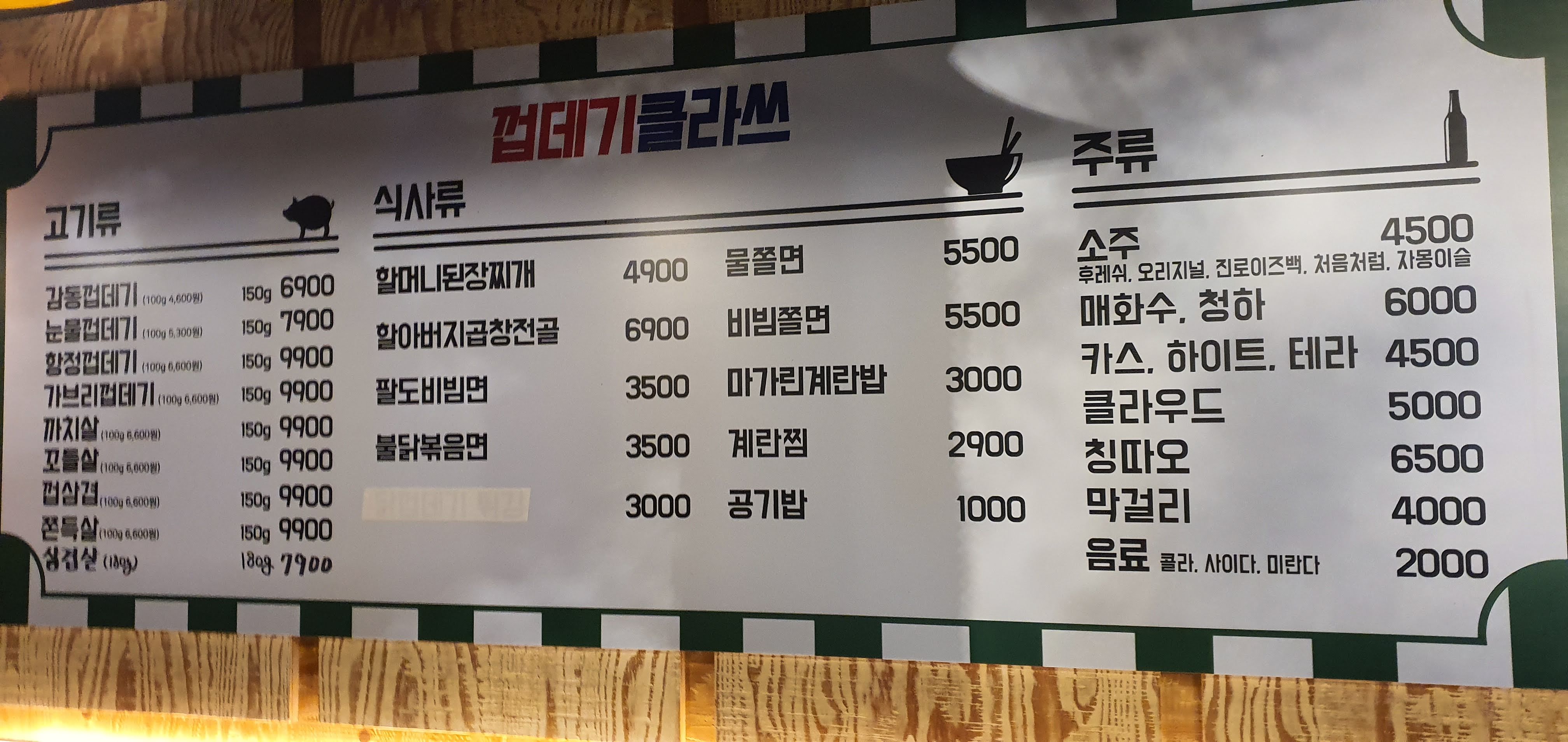 수원역 껍데기 클라쓰 메뉴