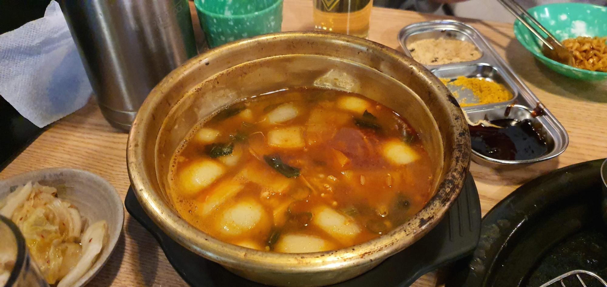 껍데기만 먹다 느끼해질 수도 있는 입안을 달래기 위해서 할아버지 곱창전골도 시켰어요.