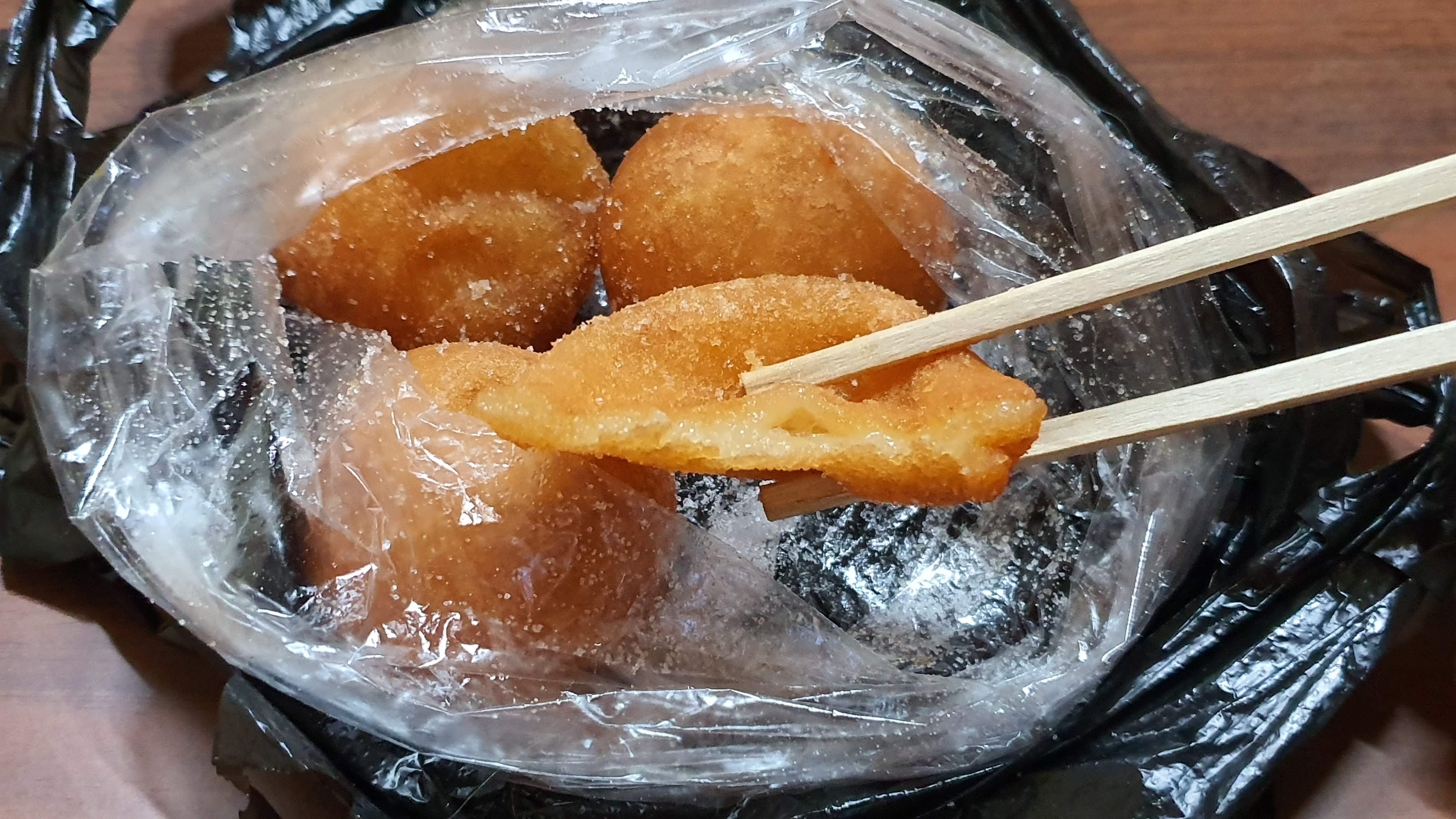 겉에 묻어 있는 설탕이 함께 어우러져서 달콤하고 쫀득하니 간식으로 너무 좋은 거 같아요. ㅎㅎ