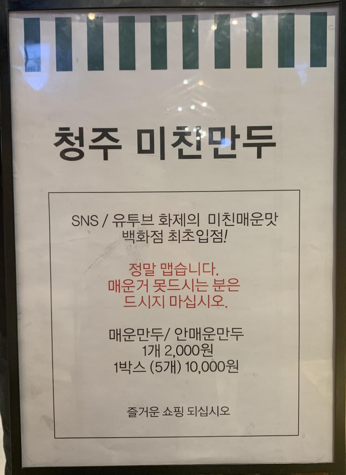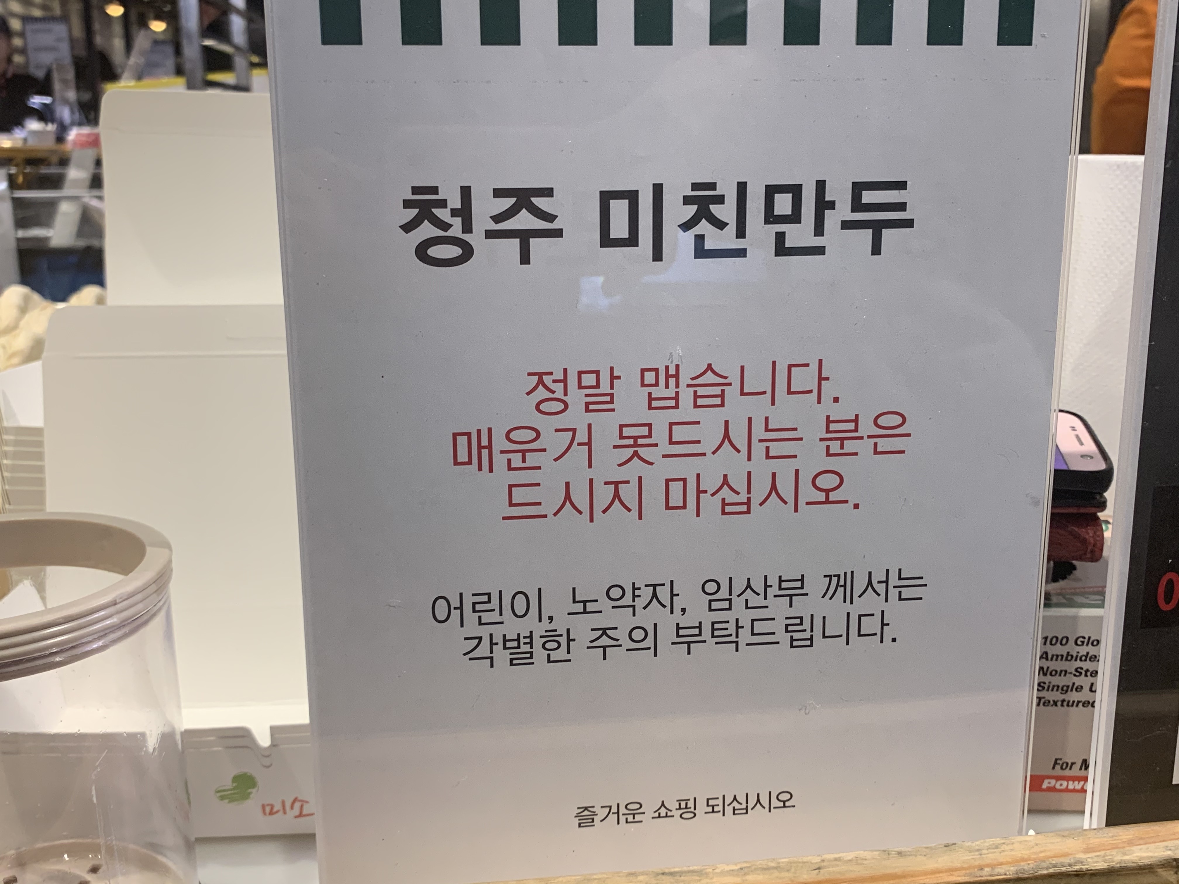 대한민국에서 제일 매운 그 만두라는 광고는 왜 붙어있는지...