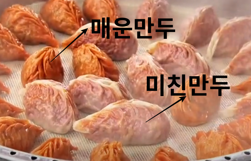 매운 만두, 안 매운 만두, 튀김 만두 이렇게 세 종류였던 거예요.