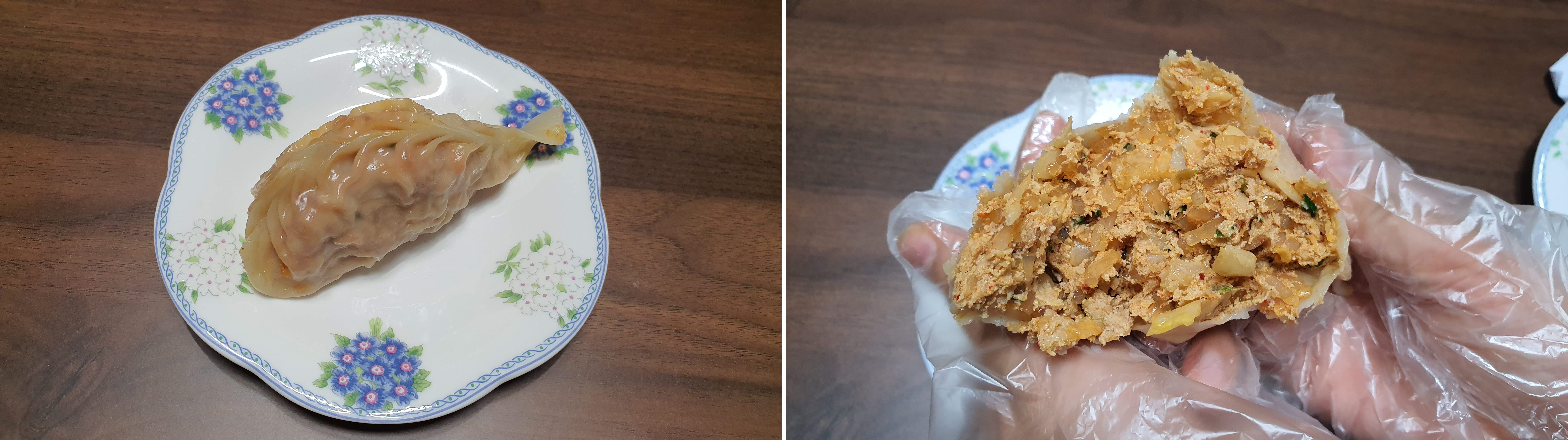 매운 만두는 김치 만두에 가까웠어요.