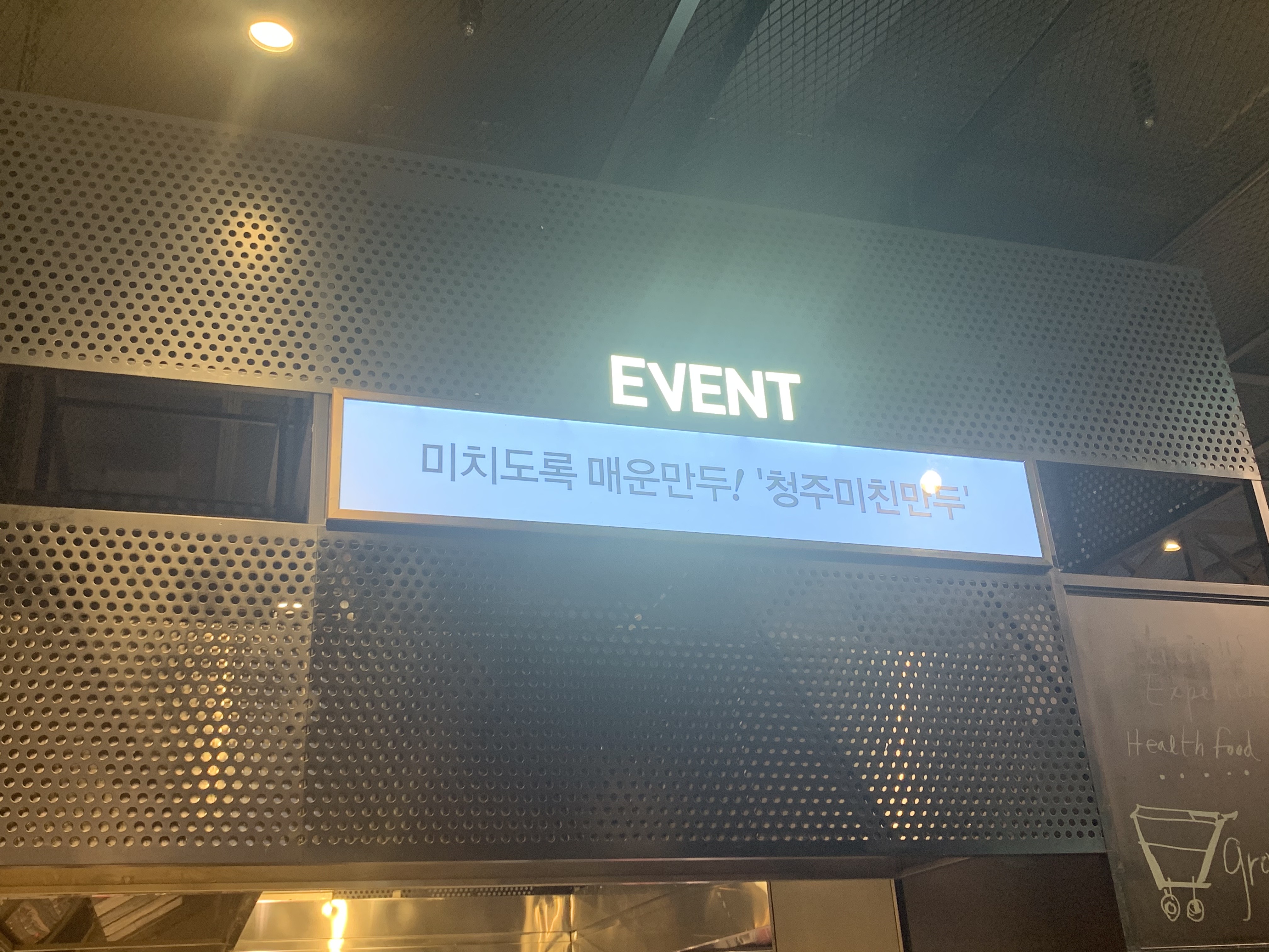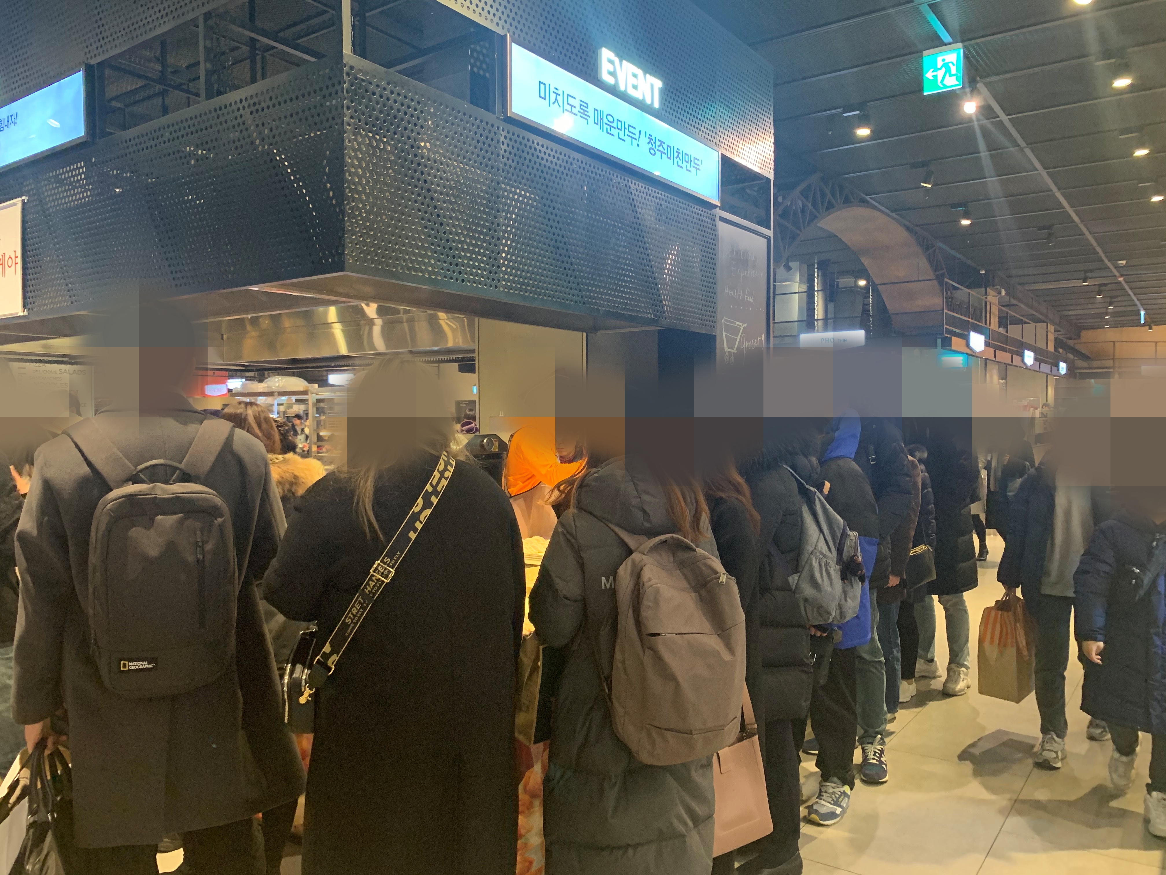 그중에서 중간 부분에 위치한 이벤트 매장에는 '미치도록 매운만두! 청주 미친 만두'의 모습이 보였어요.