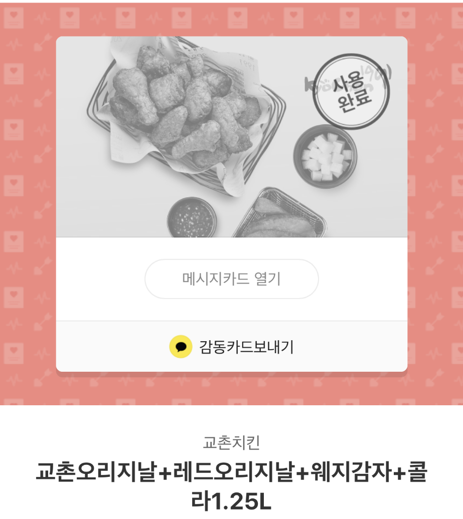 카카오로 교촌치킨을 선물 받았어요.