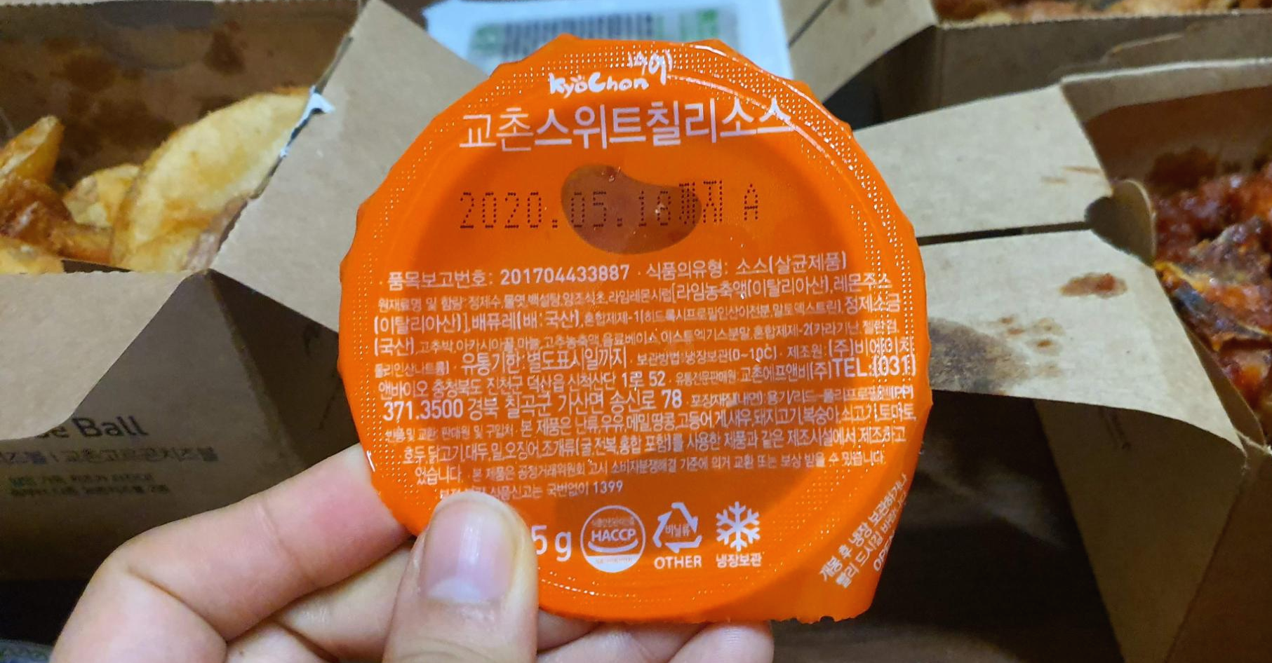 웨지감자 소스로 교촌 스위트 칠리소스를 줘요.