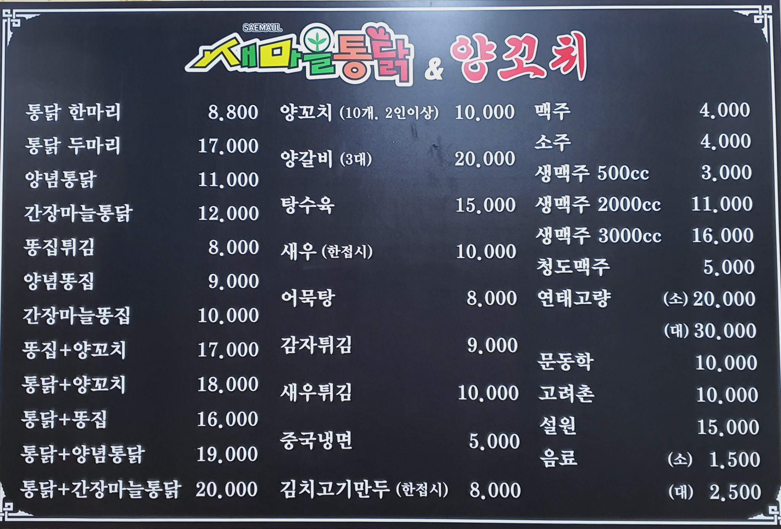 새마을 통닭 & 양꼬치 메뉴와 가격