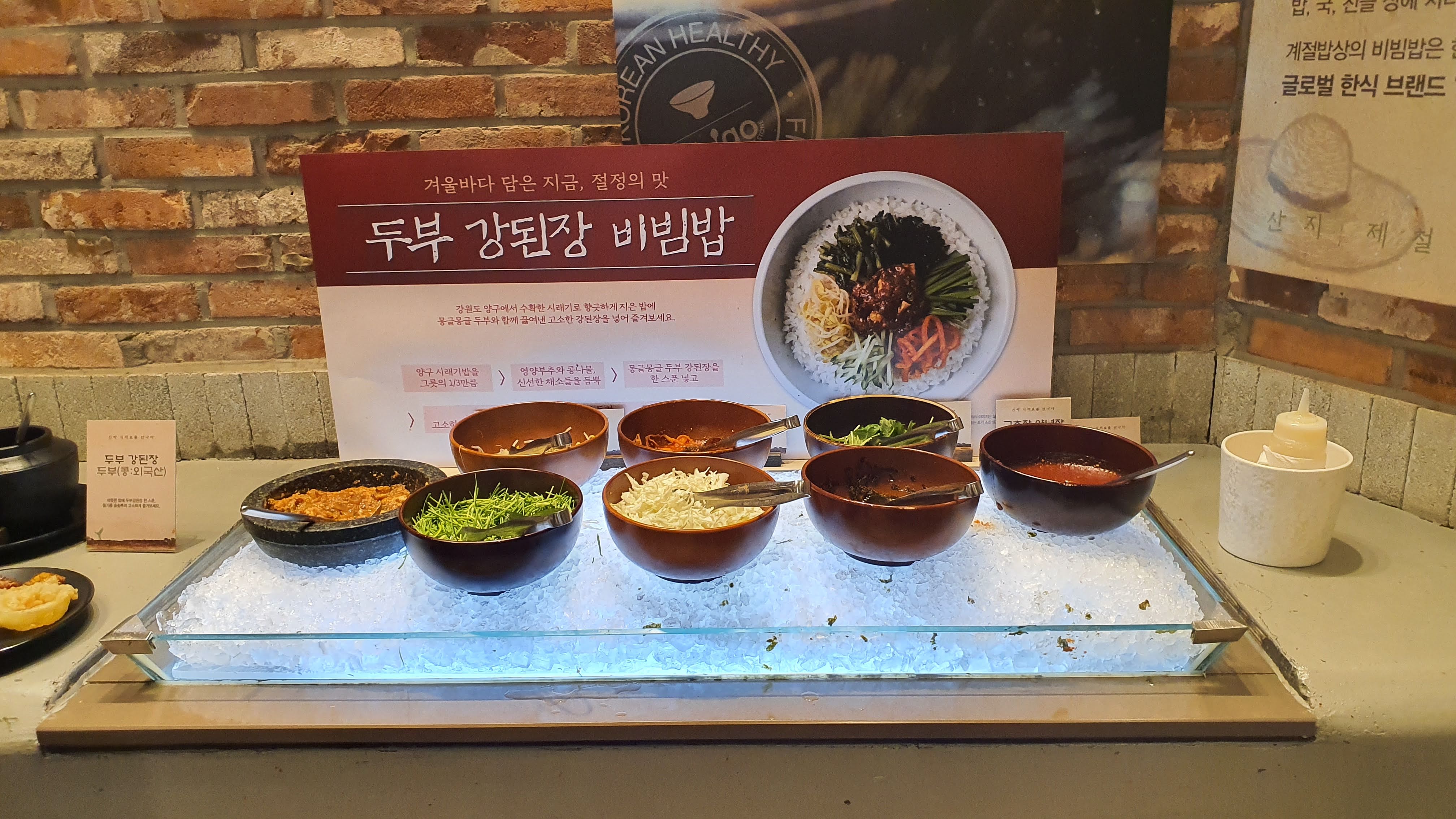 다른 한편에는 두부 강된장 비빔밥이 있었어요.