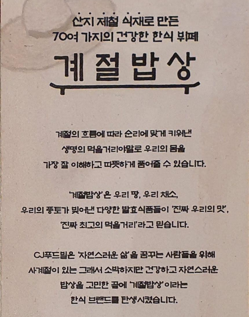 계절밥상 수원 롯데몰점의 음식들이 무엇이 있는지 쭈욱 둘러볼까요?