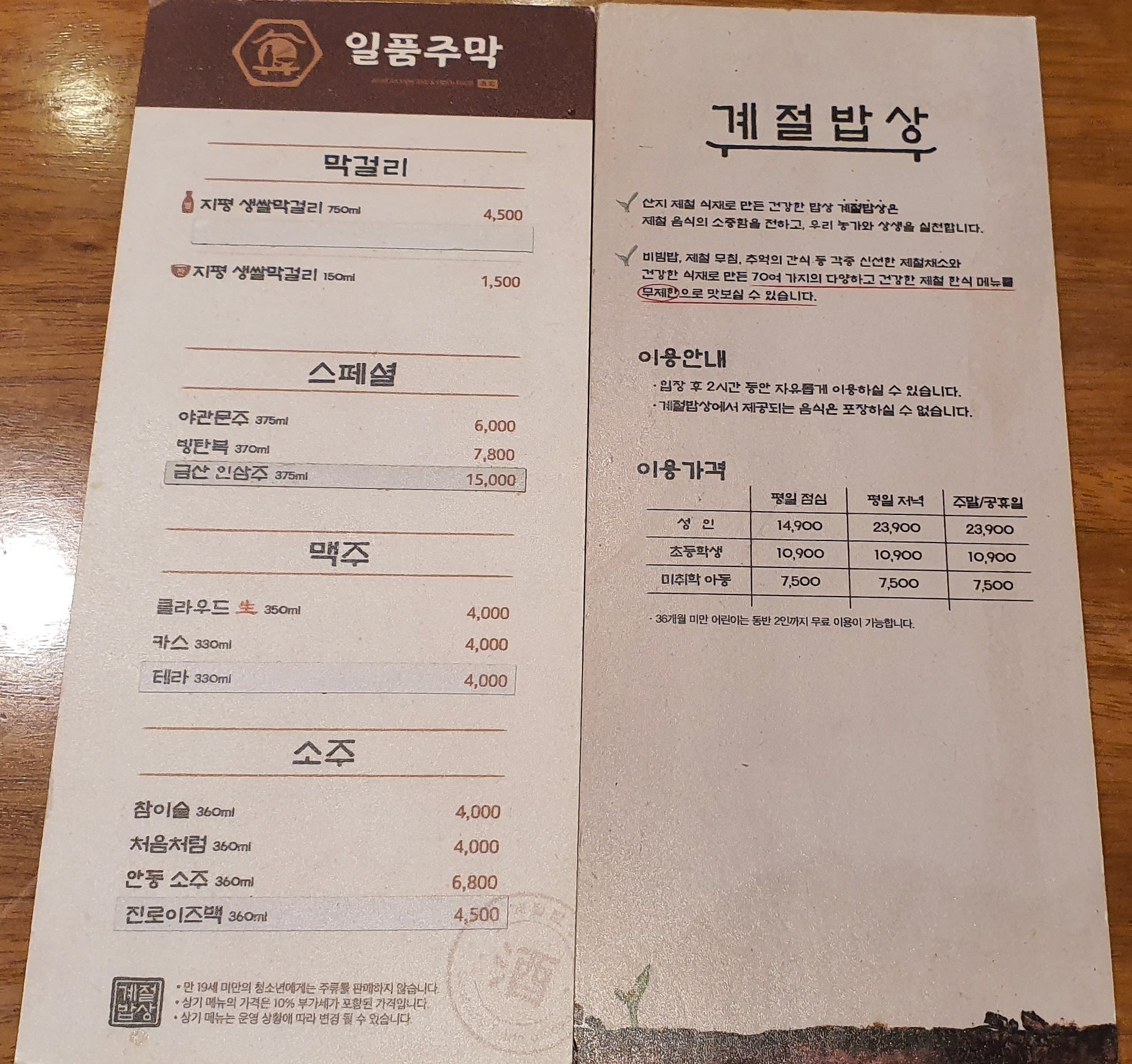 계절밥상 가격 정보