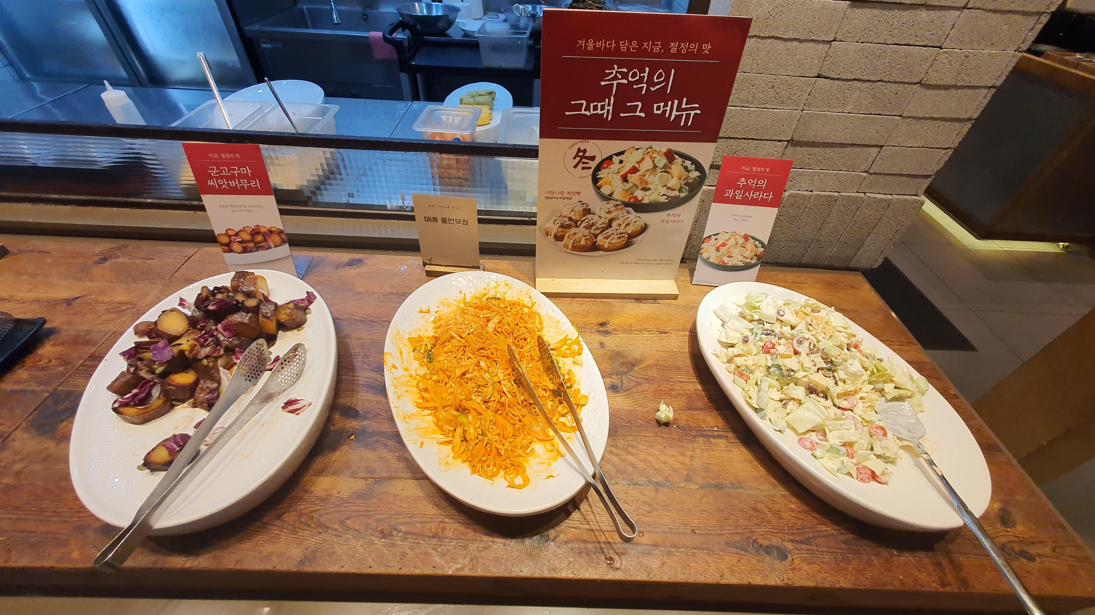 한때 계절밥상을 자주 갔었는데요. 오랜만에 가서 식성이 변한 것인지 생각보다는 작은 한식 뷔페로 규모와 음식 종류가 적은 듯한 느낌을 받았어요. 이번 겨울 파티 특집으로 등갈비와 딸기였는데요. 등갈비는 먹을 만큼 먹기 좋았어요. 그렇지만 딸기는 케이크와 푸딩만 있었다는 것과 바로 채워지지 놓지 않은 부분이 아쉬웠어요.