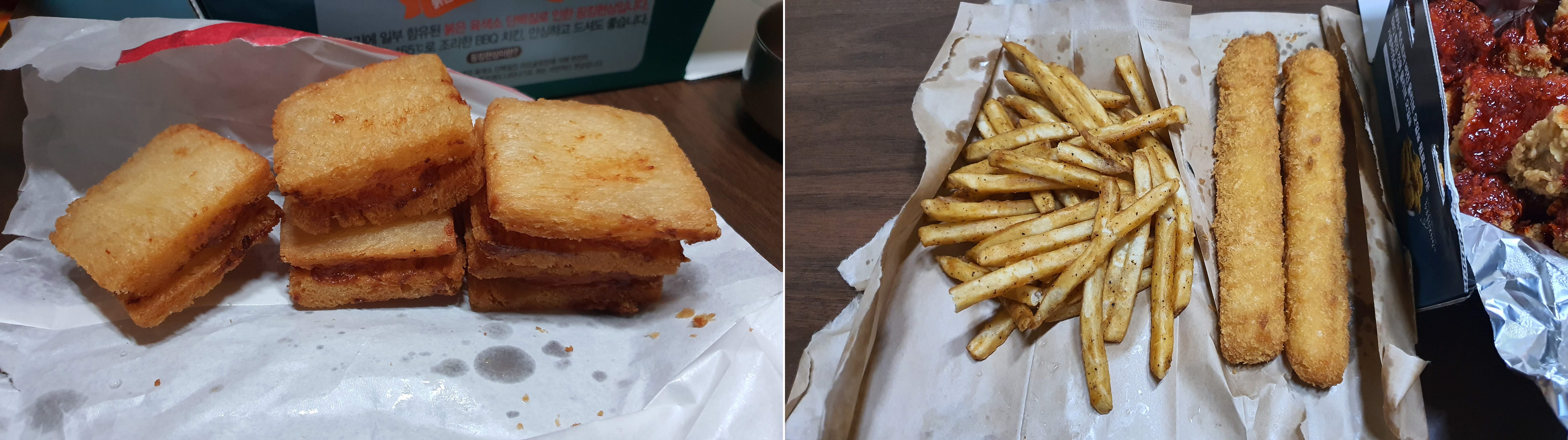 사이드 메뉴 멘보샤와 케이준감자, 치즈스틱