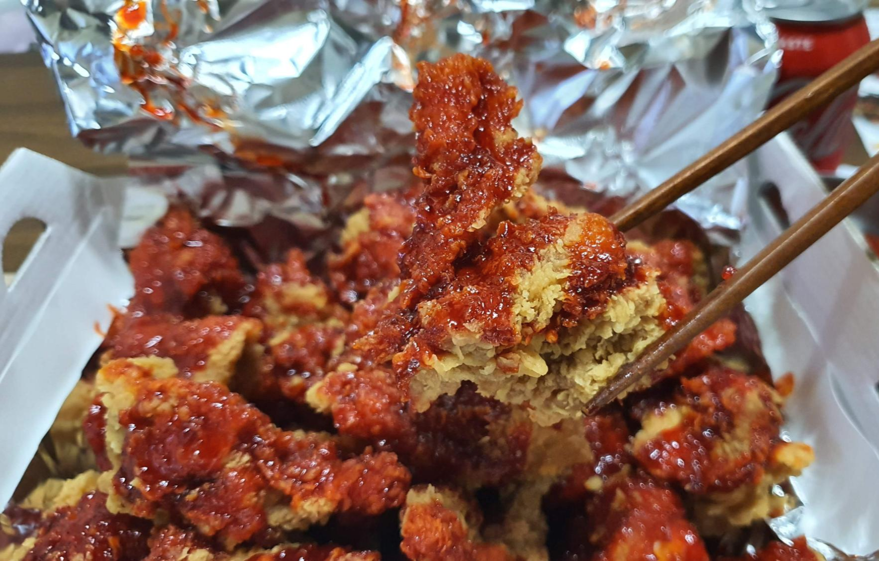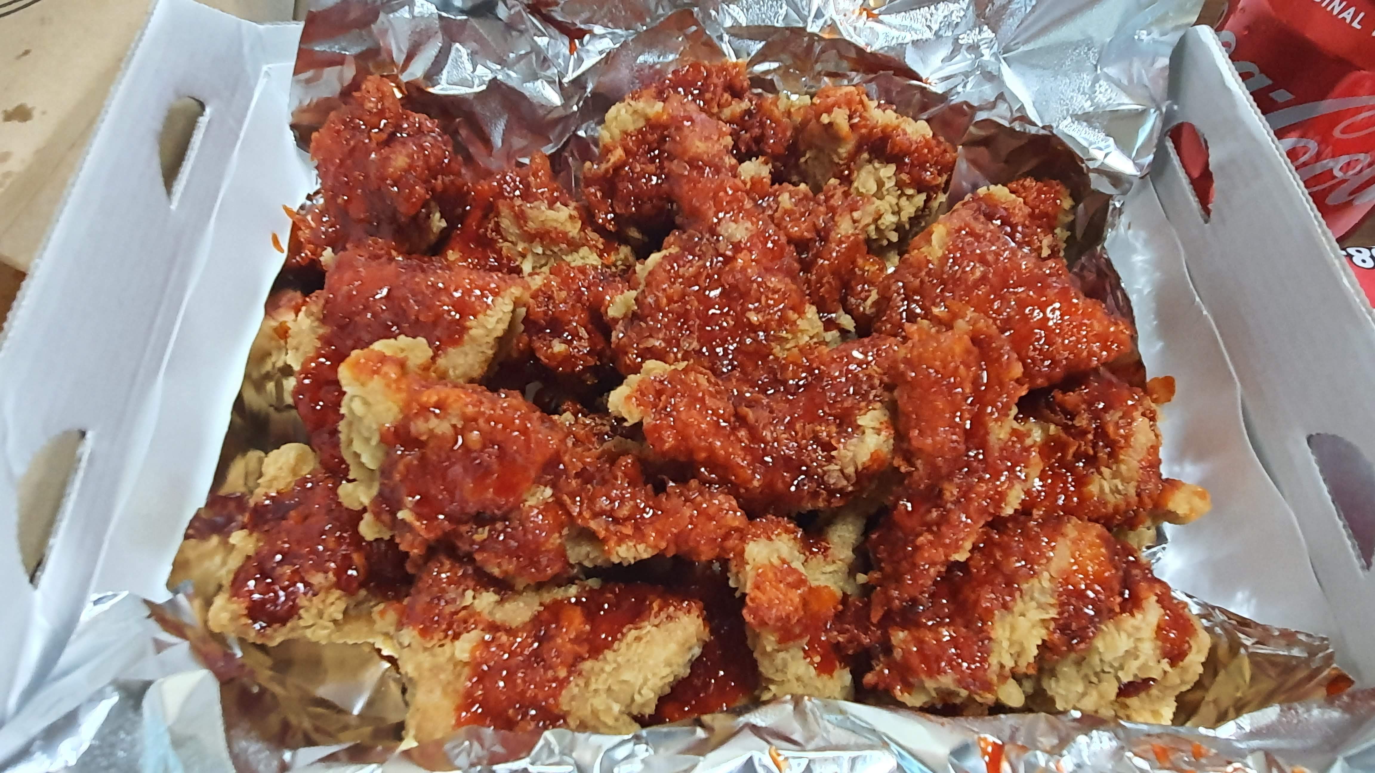 뱀파이어 치킨은 너무 매운 소스라서 양념을 한쪽 면만 묻게 하는 식으로 하는 거 같아요.